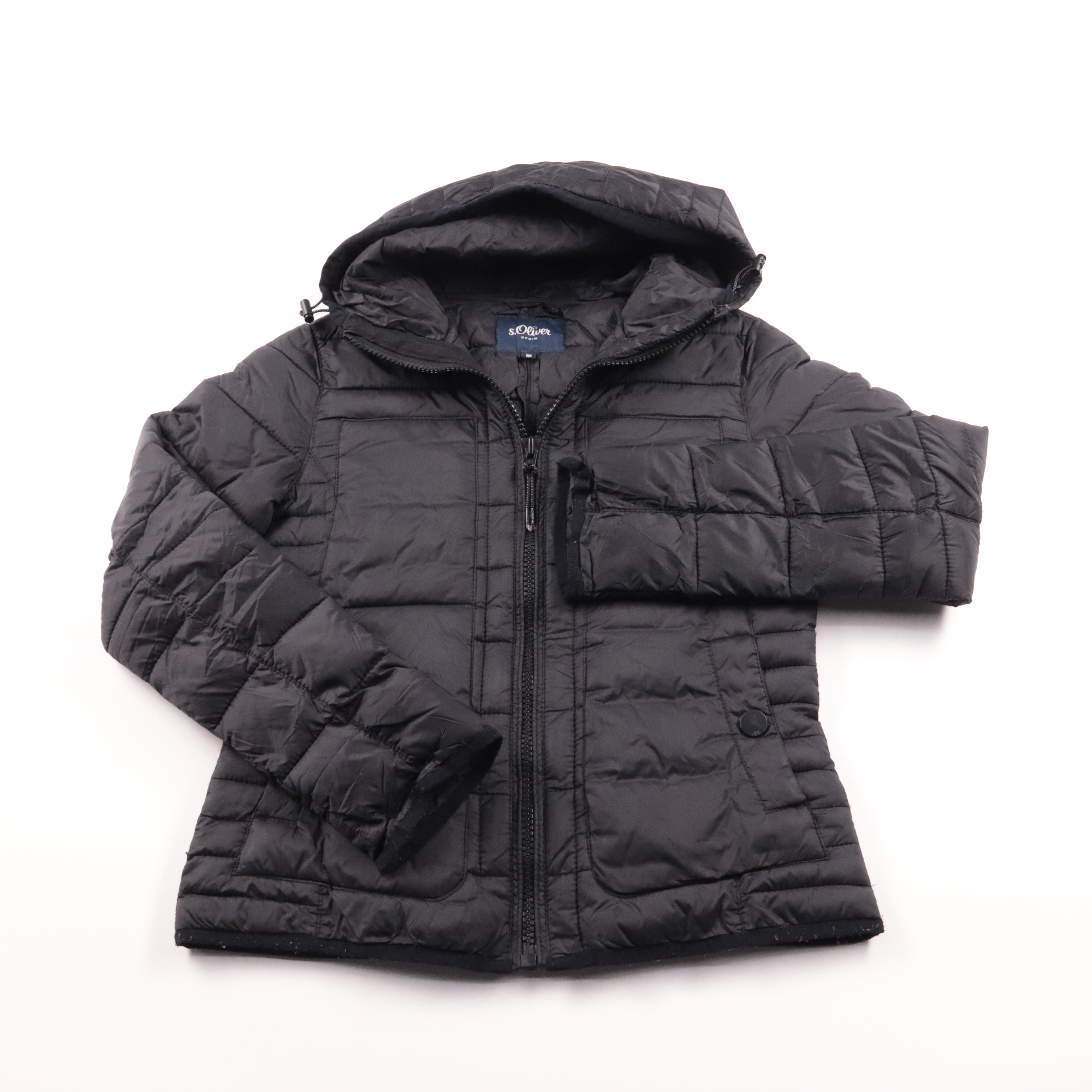 Стёганая куртка s.Oliver с капюшоном и застёжкой на молнию. Подойдёт для повседневной носки в прохладную погоду, есть удобные карманы. Лёгкий утеплённый материал не сковывает движения и прост в уходе.