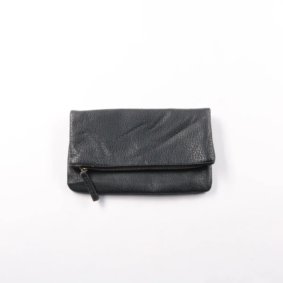 Кожаная косметичка-клатч без бренда, чёрного цвета, с застёжкой на молнию и клапаном на кнопках. Подойдёт для хранения косметики и мелочей в сумке или как компактный клатч на выход. Практичное преимущество — мягкая зернистая кожа и удобный формат, который легко помещается в рюкзак или чемодан.