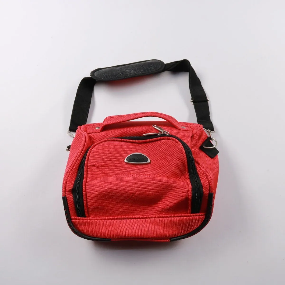 Текстильная сумка через плечо с короткой ручкой, бренд не указан. Подойдёт для повседневных дел и поездок: есть основное отделение и внешние карманы на молнии. Практичный плюс — регулируемый ремень с мягкой накладкой на плечо.