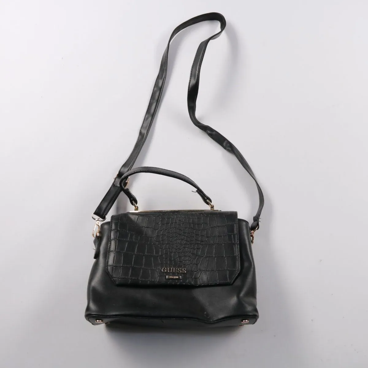 Женская сумка Guess чёрного цвета с откидным клапаном под кроко и длинным ремнём через плечо. Подойдёт для города и повседневных образов, внутрь поместятся телефон, кошелёк и мелочи. Практичный плюс — компактный формат и несколько отделений для удобной организации.