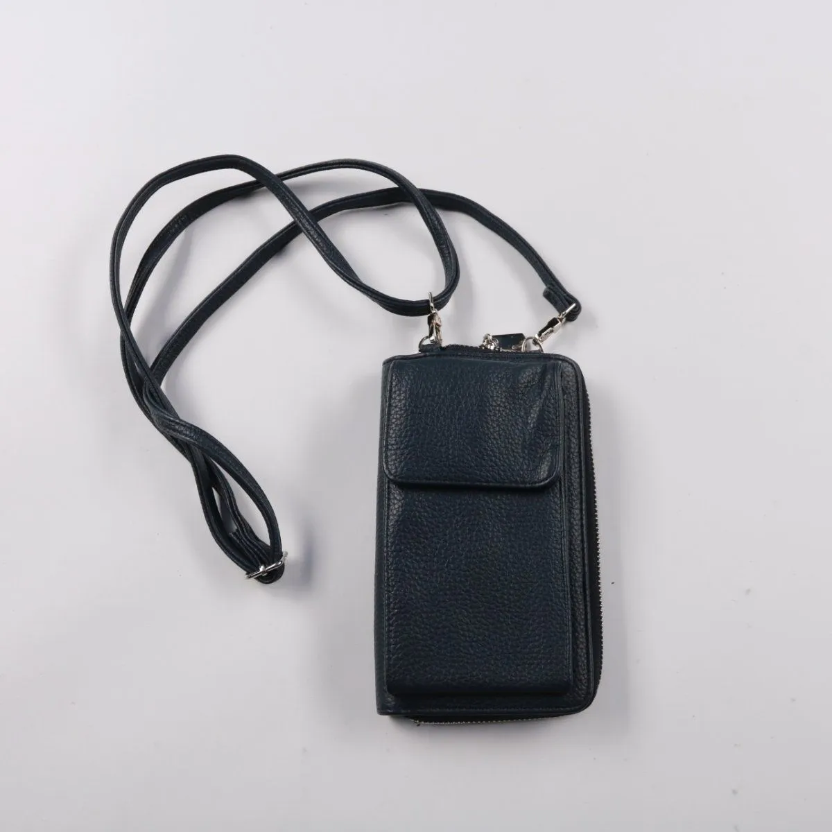 Компактная сумка-чехол на длинном ремешке, удобно носить через плечо на каждый день и в поездках. Внутри несколько отделений на молнии для телефона, карт и мелочей. Практичный плюс — занимает минимум места и помогает держать вещи под рукой.