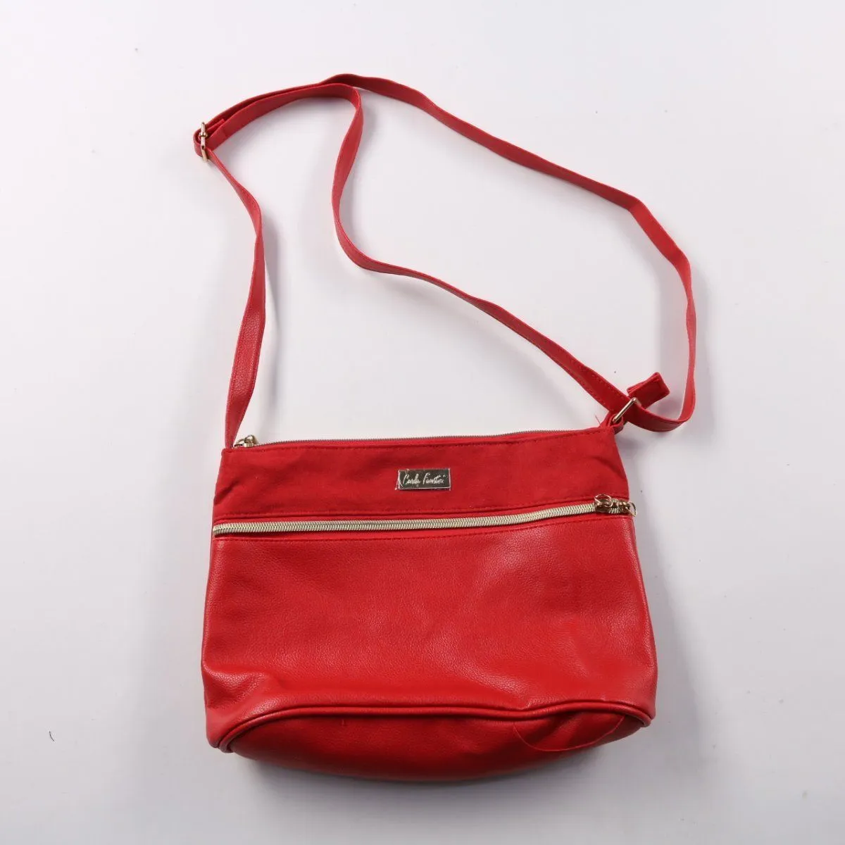Сумка через плечо Carlo Ronaldi красного цвета, компактная и лёгкая, с регулируемым ремнём и застёжкой на молнию. Подойдёт для повседневных прогулок и поездок, когда нужно взять только самое необходимое. Удобный внешний карман на молнии помогает быстро достать телефон или ключи.