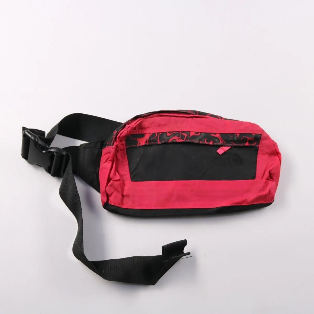 Поясная сумка The North Face в черно-розовом цвете с регулируемым ремнём и застёжкой-фастекс. Подойдёт для прогулок, поездок и повседневных дел, когда нужно держать телефон, ключи и документы под рукой. Лёгкая и компактная, удобно носится на поясе или через плечо.