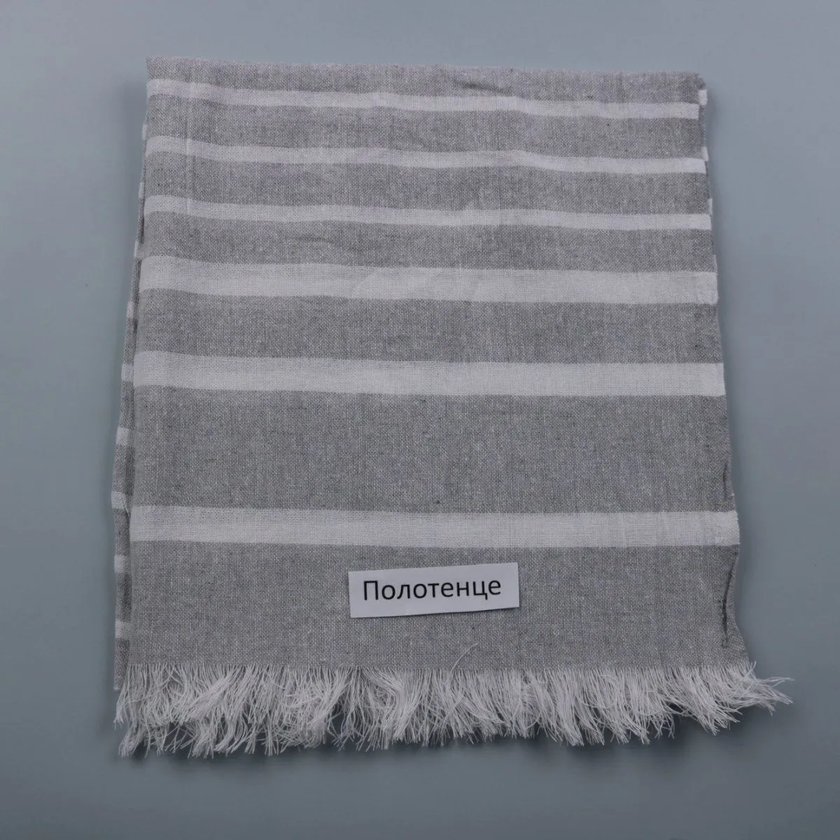 Полотенце Nivea в серо-белую полоску с бахромой по краю, подойдёт для ванной, бассейна или поездок. Лёгкое и компактно складывается, удобно брать с собой. Быстро сохнет и не занимает много места в сумке.