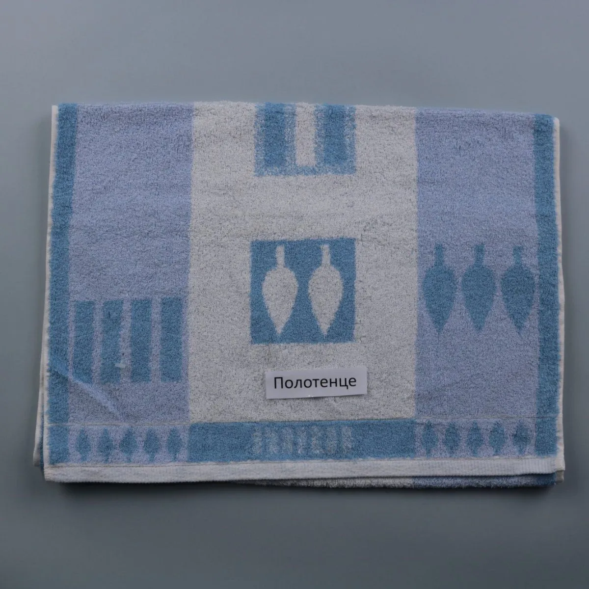 Полотенце Nobe из 100% хлопка, мягкое махровое, в голубых тонах с геометрическим рисунком. Подойдёт для ванной, бани или бассейна, хорошо впитывает влагу и быстро сохнет.