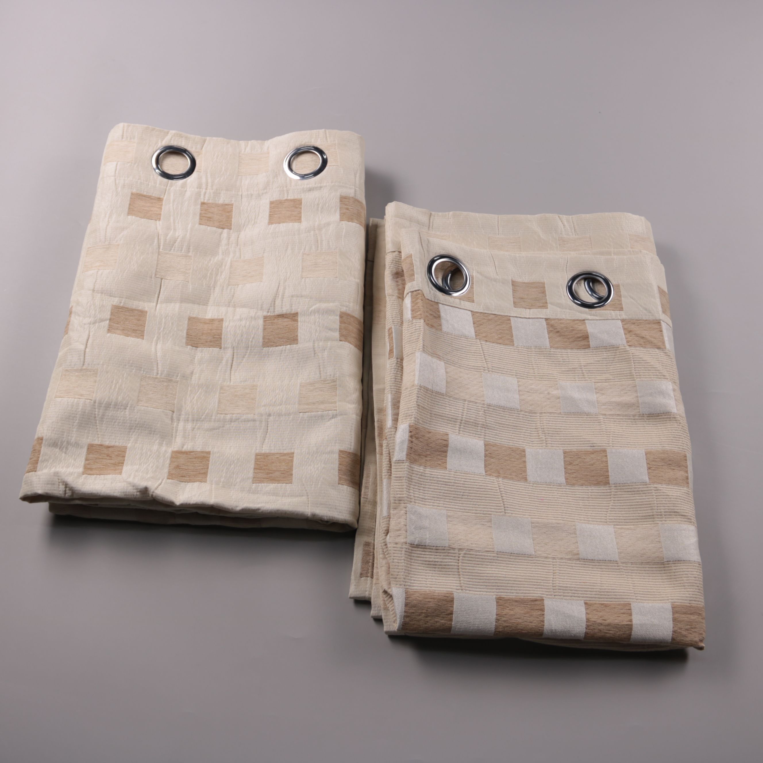 Шторы с люверсами в бежево-коричневой клетке, подойдут для спальни или гостиной в спокойных нейтральных тонах. Хорошо рассеивают свет и помогают создать более уютную атмосферу в комнате. Люверсы обеспечивают быстрое и ровное размещение на карнизе.