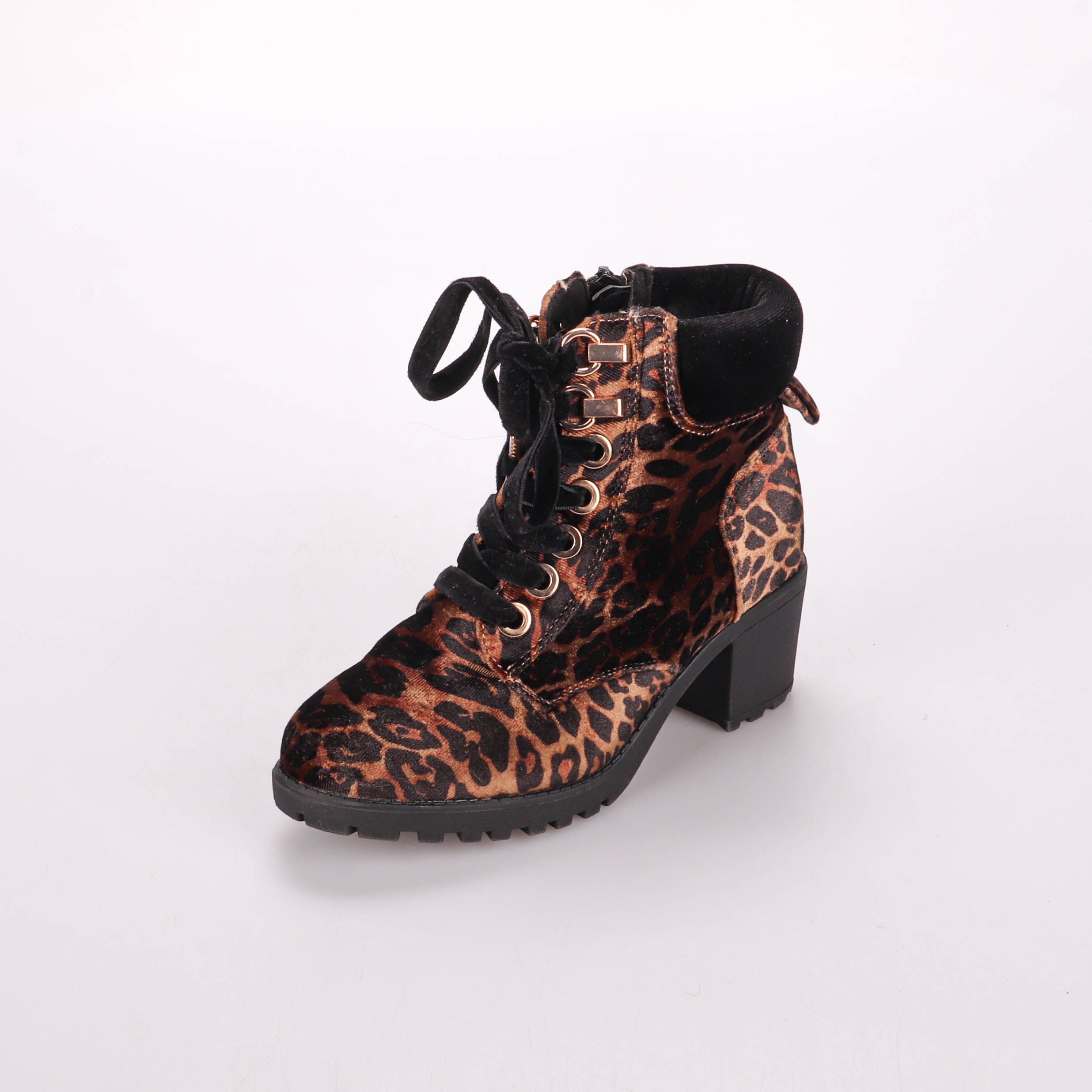 Женские ботильоны с леопардовым принтом, на устойчивом каблуке и шнуровке, дополнены молнией сбоку. Подойдут для повседневных образов в межсезонье и для прогулок по городу. Рельефная подошва даёт хорошее сцепление и делает пару более практичной.