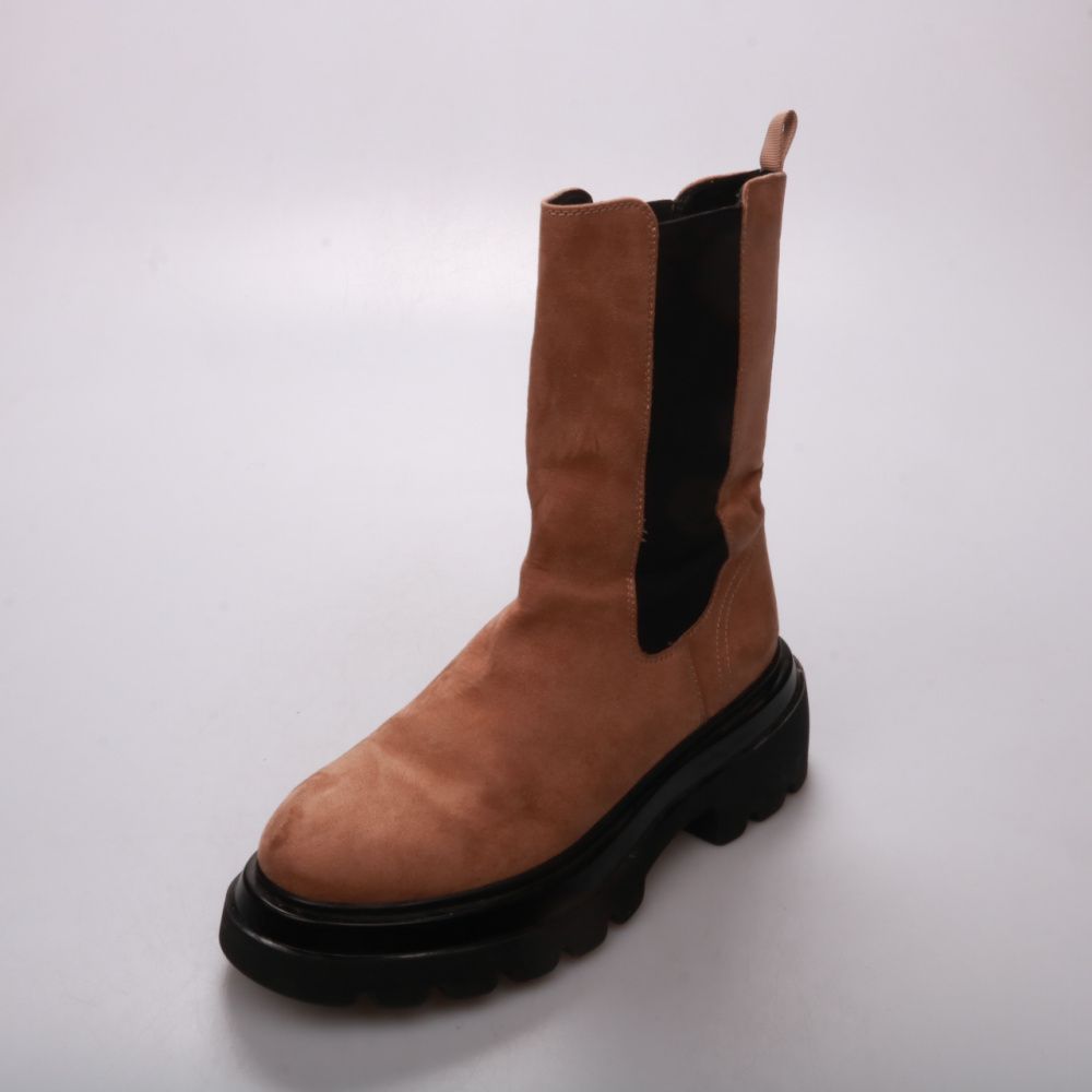 Женские замшевые ботинки без бренда в коричневом цвете, с эластичными вставками как у челси и массивной тракторной подошвой. Подойдут для повседневных образов в прохладную погоду и прогулок по городу. Рельефная подошва даёт более уверенное сцепление и ...