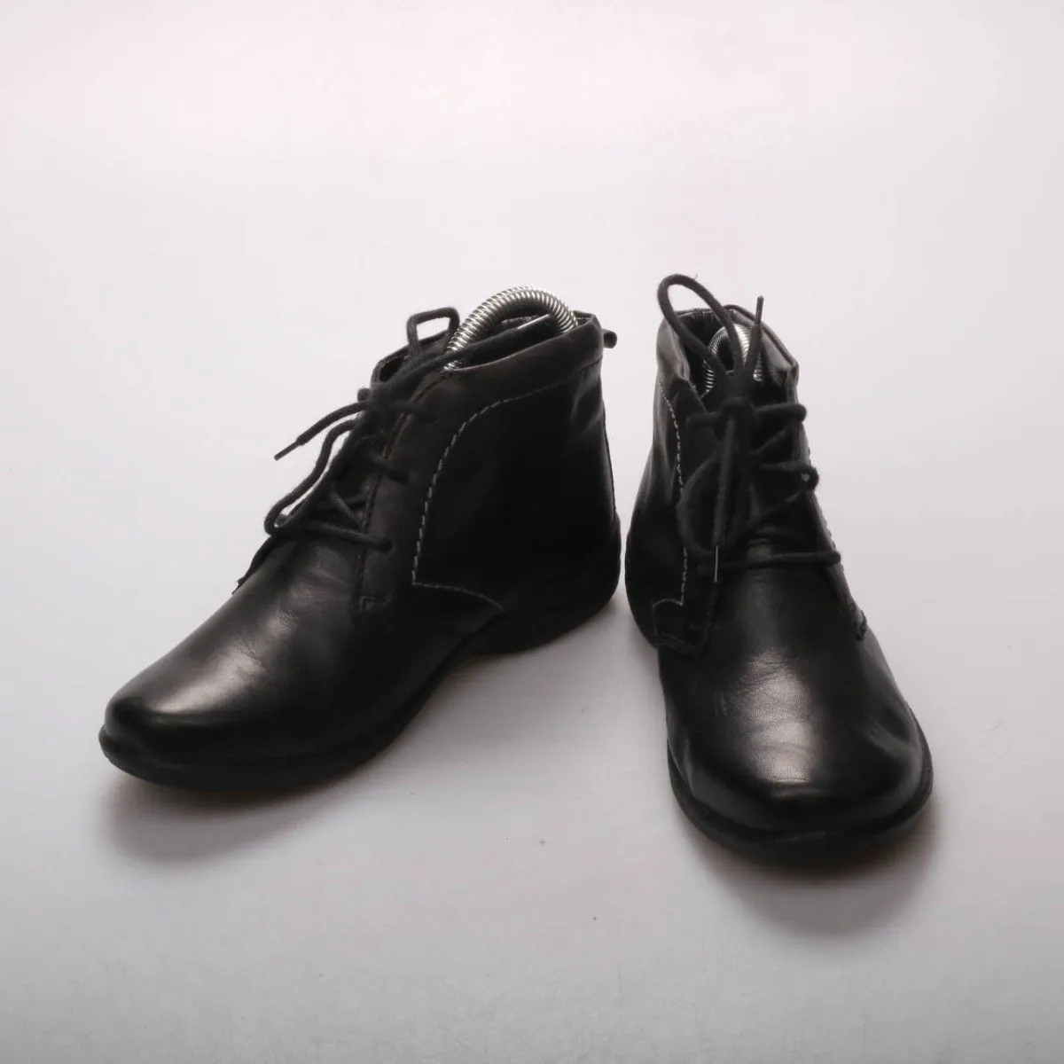 Женские ботинки Josef Seibel из чёрной кожи на шнуровке, укороченная модель до щиколотки. Подойдут для повседневной носки в межсезонье с джинсами и брюками. Практичное преимущество — устойчивая подошва с выраженным протектором.