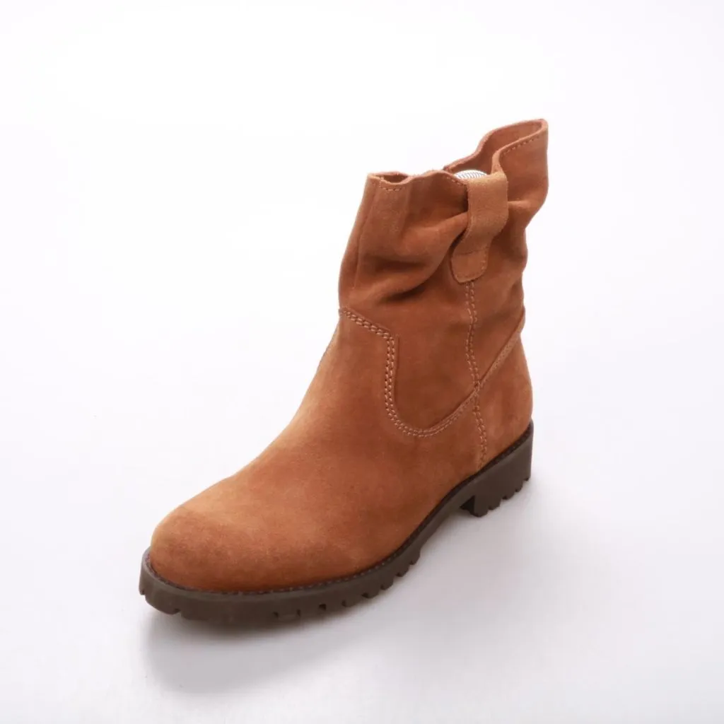 Замшевые женские ботинки без бренда, коричневого цвета, на тракторной подошве с боковой молнией. Подойдут для повседневных прогулок в прохладную погоду и с джинсами или платьями. Рельефная подошва даёт хорошее сцепление на мокром асфальте.
