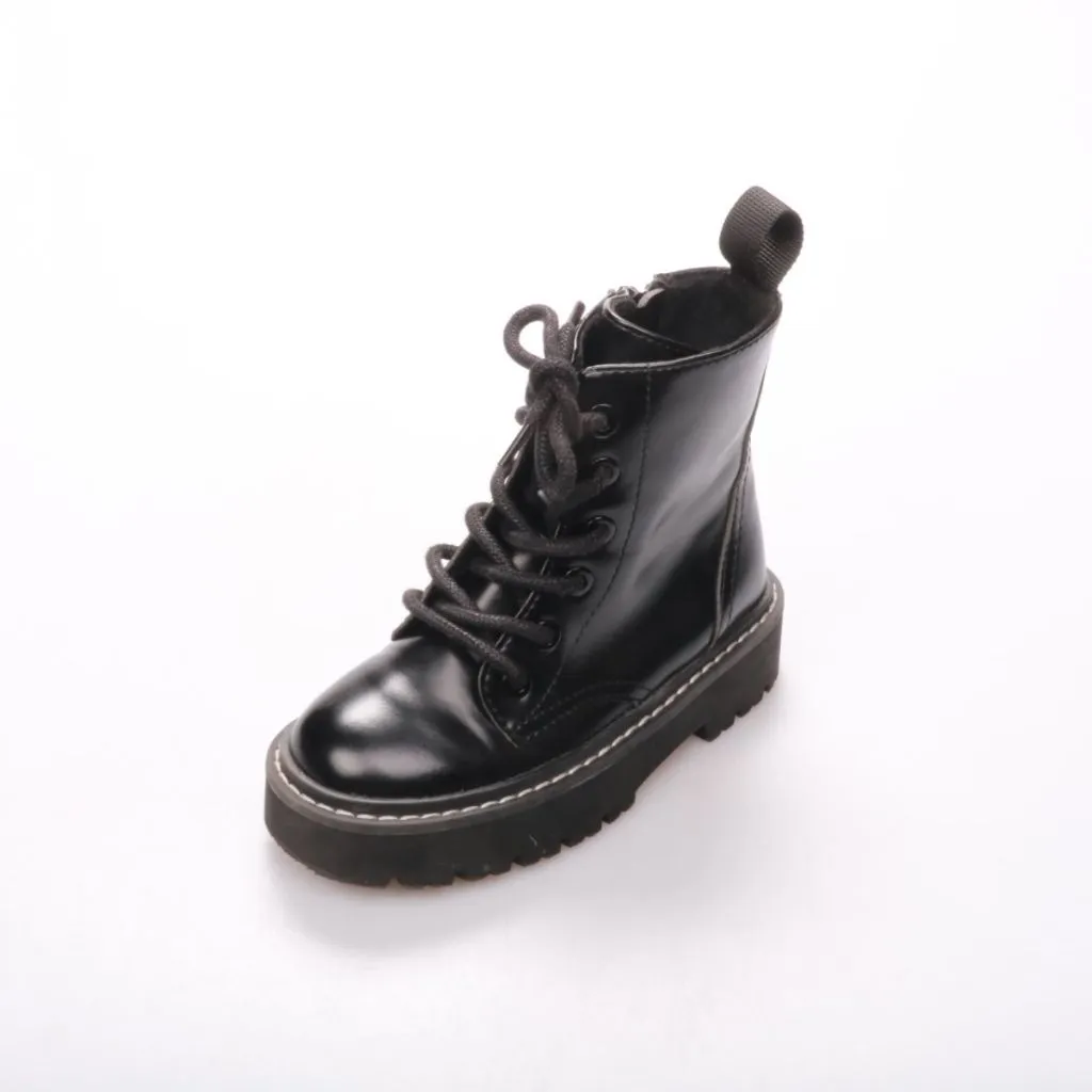 Ботинки H&M из гладкого чёрного материала со шнуровкой и боковой молнией. Подойдут для прогулок в городе в демисезон, когда нужна закрытая и устойчивая обувь. Плотная рифлёная подошва даёт хорошее сцепление, а молния ускоряет обувание.