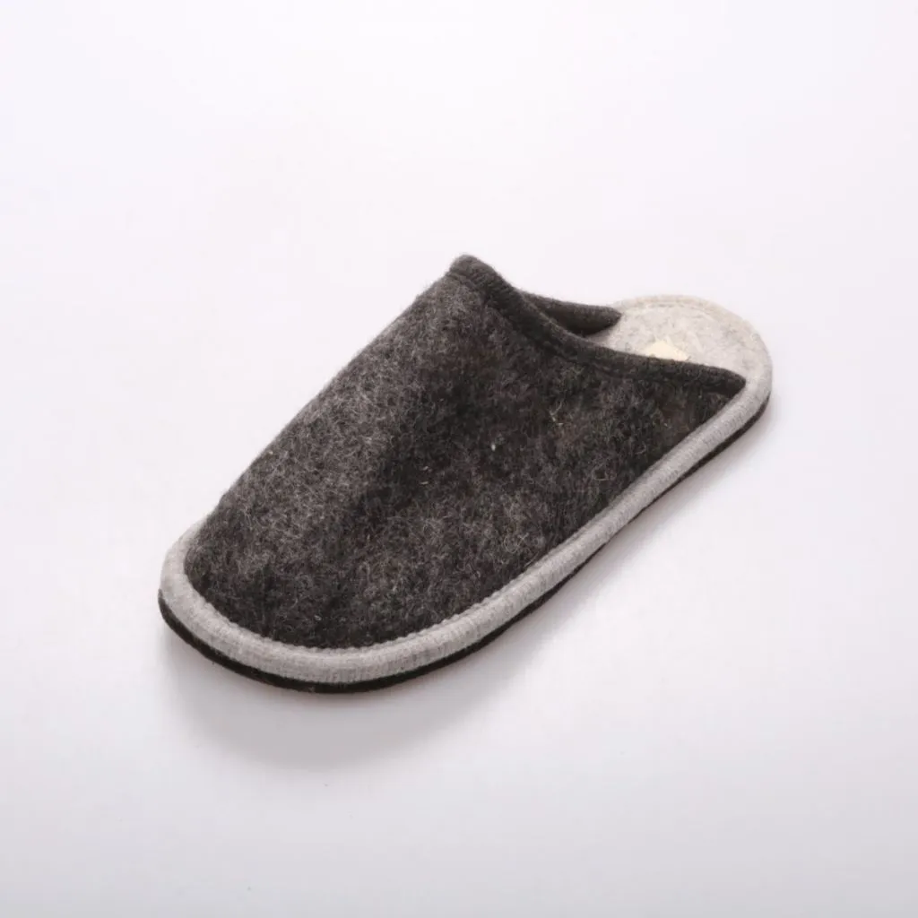 Домашние тапочки Natura в формате открытых мюлей из плотного войлока/шерсти в сером цвете. Подойдут для дома и дачи в прохладное время, когда нужна закрытая стопа без задника. Практичное преимущество — лёгкая резиновая подошва, которая меньше скользит ...