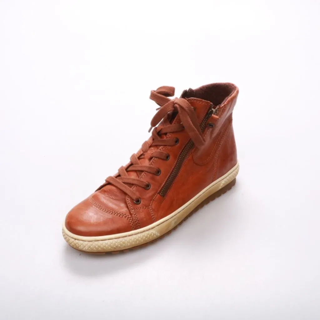 Женские кожаные кроссовки Gabor в высоком исполнении, на шнуровке и с боковой молнией. Подойдут для повседневной носки в городе в прохладную погоду и на межсезонье. Практичное преимущество — молния сбоку позволяет быстро надевать и снимать обувь.