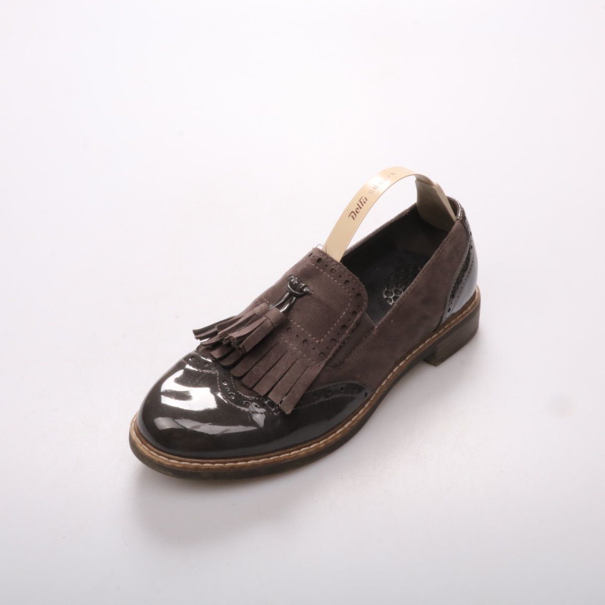 Женские лоферы DeFacto в сочетании лакированной кожи и замши, с кисточками на подъёме. Подойдут для офиса и повседневных образов в межсезонье, хорошо смотрятся с брюками и юбками. Устойчивый низкий каблук и закрытый нос делают пару удобной для долгой носки.