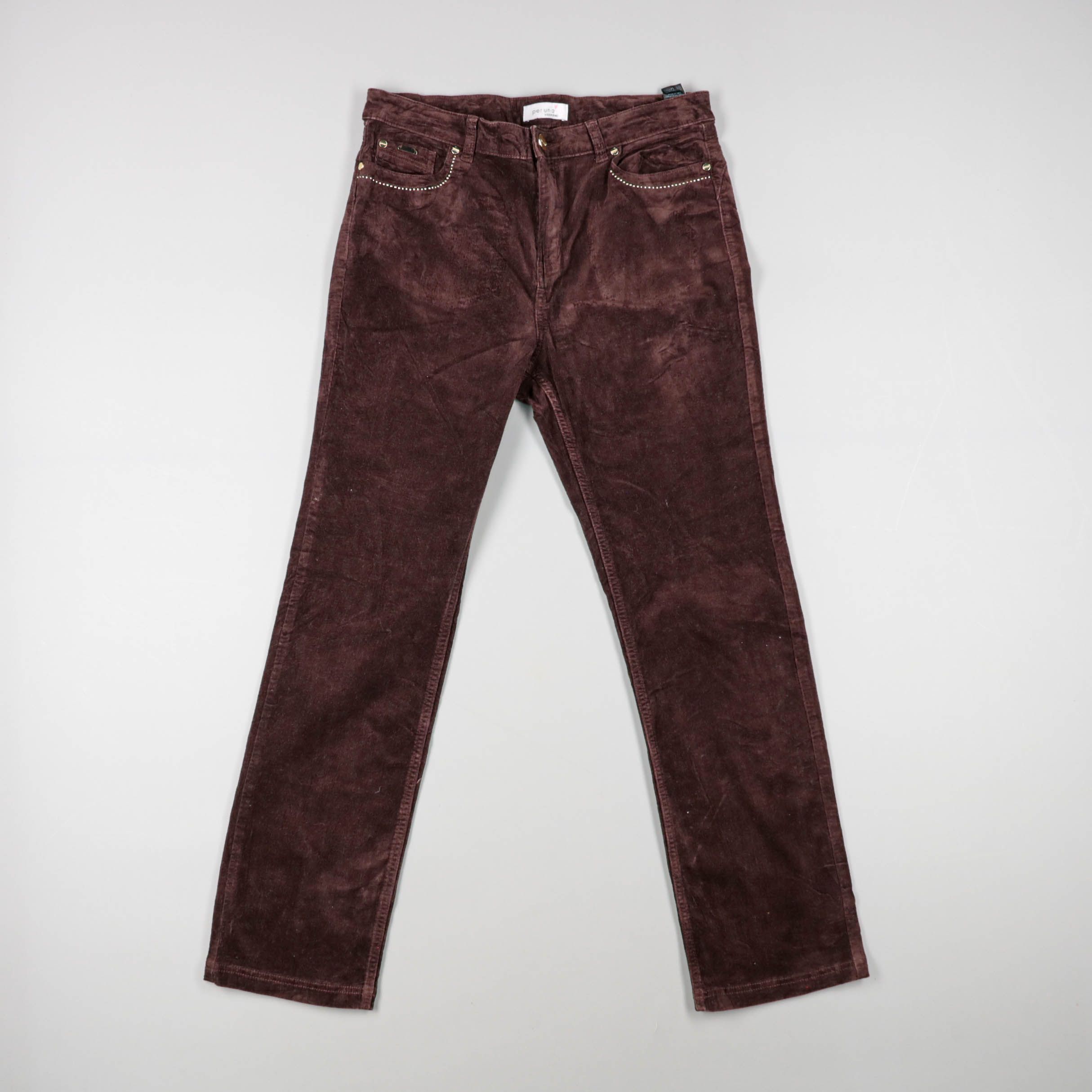 Женские прямые брюки из бархата/велюра в бордовом оттенке, с классической посадкой и пятью карманами. Подойдут для повседневных образов в демисезон и прохладные дни, хорошо сочетаются со свитерами и рубашками. Практичный плюс — плотная ткань держит фор...