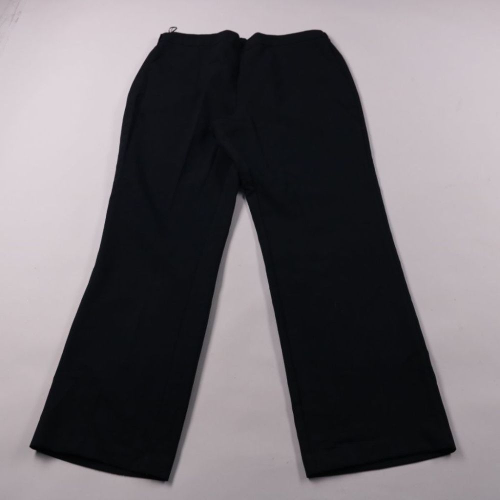 Женские чёрные брюки прямого кроя (straight leg), подойдут для офиса и повседневных образов. Лаконичный силуэт легко сочетается с рубашками и жакетами. Практичны в уходе: ткань 100% полиэстер, быстро сохнет и почти не мнётся.