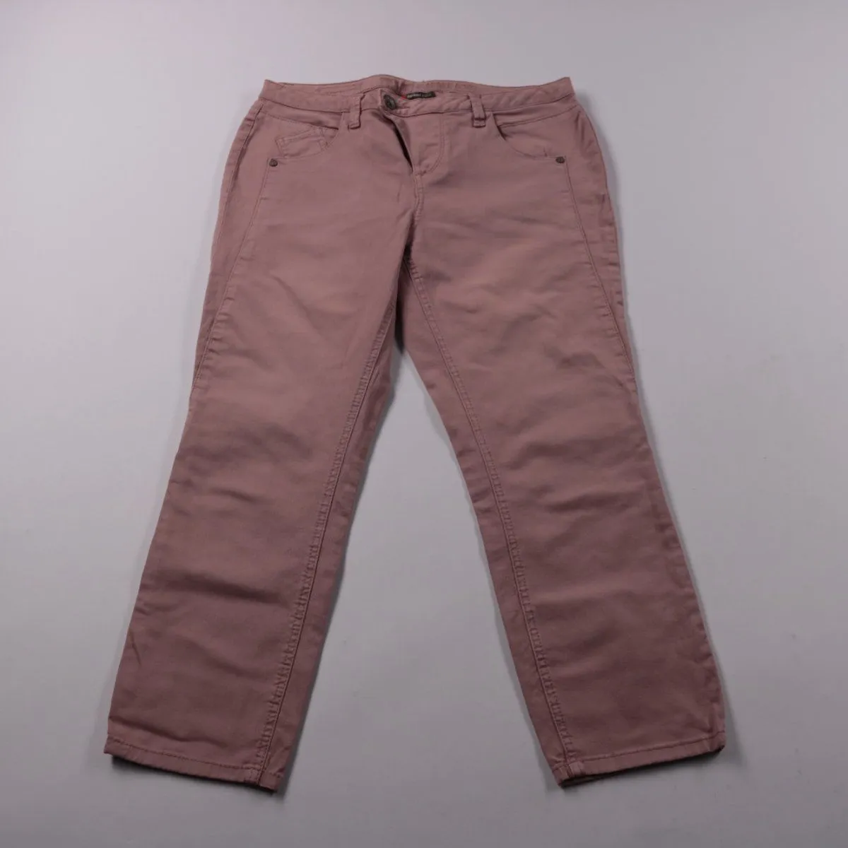 Женские брюки Street One в пыльно-розовом цвете, прямого кроя с классической посадкой и застёжкой на молнию и пуговицу. Подойдут на каждый день и для офиса в сочетании с рубашкой или свитером; эластичность ткани даёт более комфортную посадку.