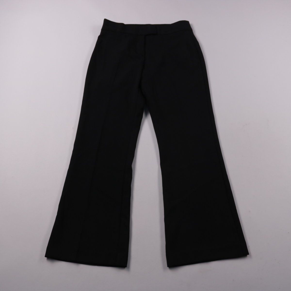 Чёрные женские брюки George с высокой/средней посадкой и слегка расклешёнными штанинами. Подойдут для офиса и повседневных образов в демисезон и круглый год. Материал из 100% полиэстера практичен в уходе и меньше мнётся.