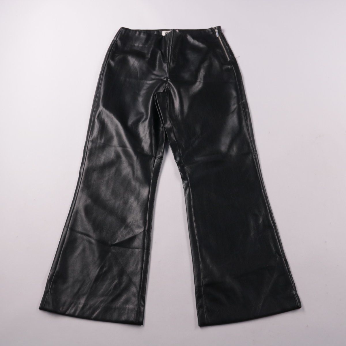 Чёрные женские брюки ONLY из искусственной кожи (полиуретановое покрытие), модель с высокой посадкой и расклешением от колена (kick-flared). Подойдут для городских образов на прохладную погоду и легко сочетаются с ботинками или каблуком. Практичное покрытие просто протирается влажной салфеткой.