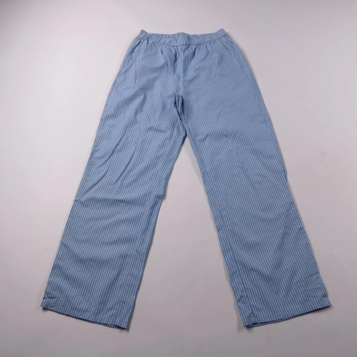 Брюки ONLY в голубую полоску, прямого кроя с эластичным поясом. Подойдут для повседневных летних образов и дома благодаря лёгкой хлопковой ткани. Пояс на резинке обеспечивает комфортную посадку без застёжек.