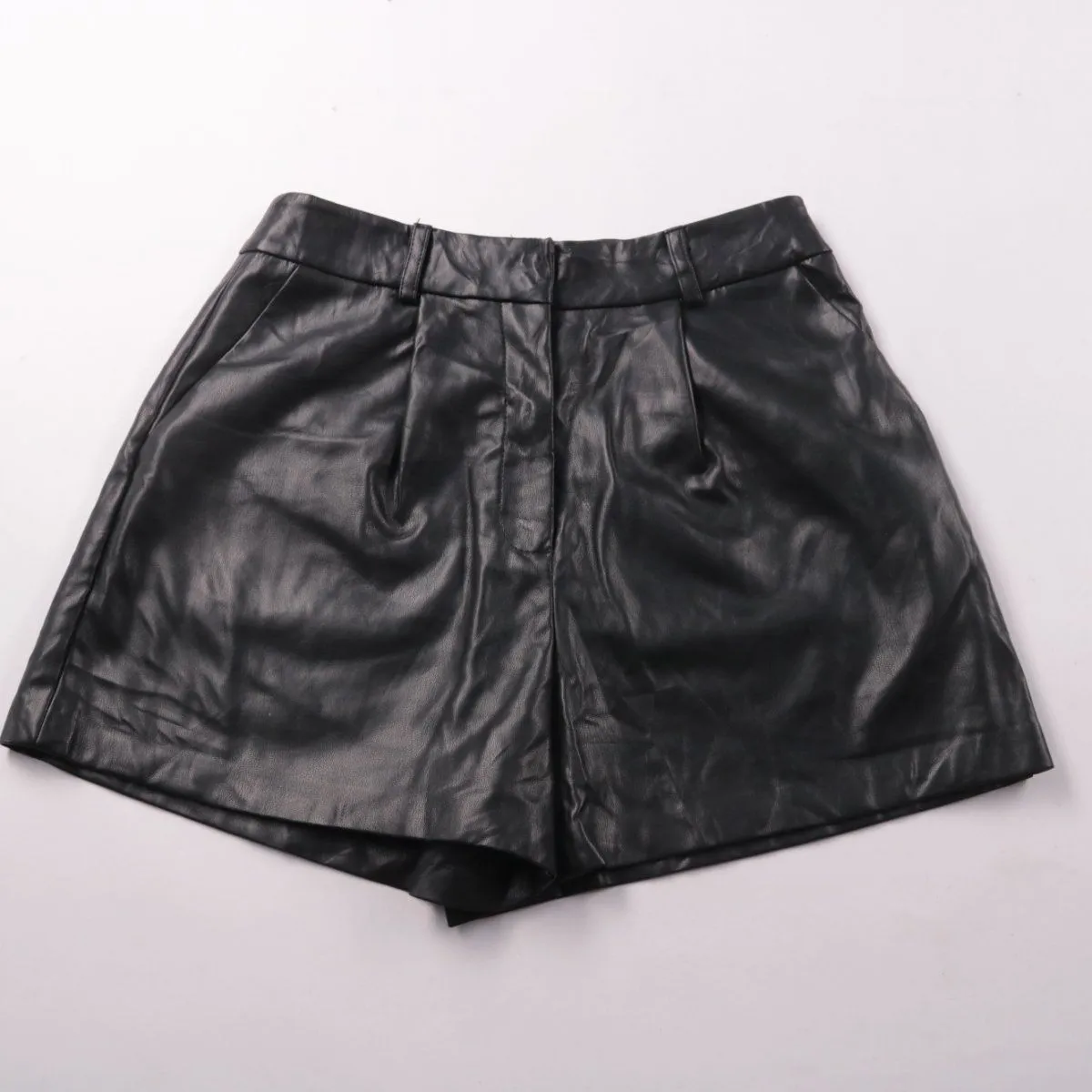 Женские шорты AMISU из эко-кожи чёрного цвета, с шлёвками для ремня и боковыми карманами. Подойдут для повседневных образов и вечерних выходов. Практичное преимущество — материал легко протирается и не требует сложного ухода.