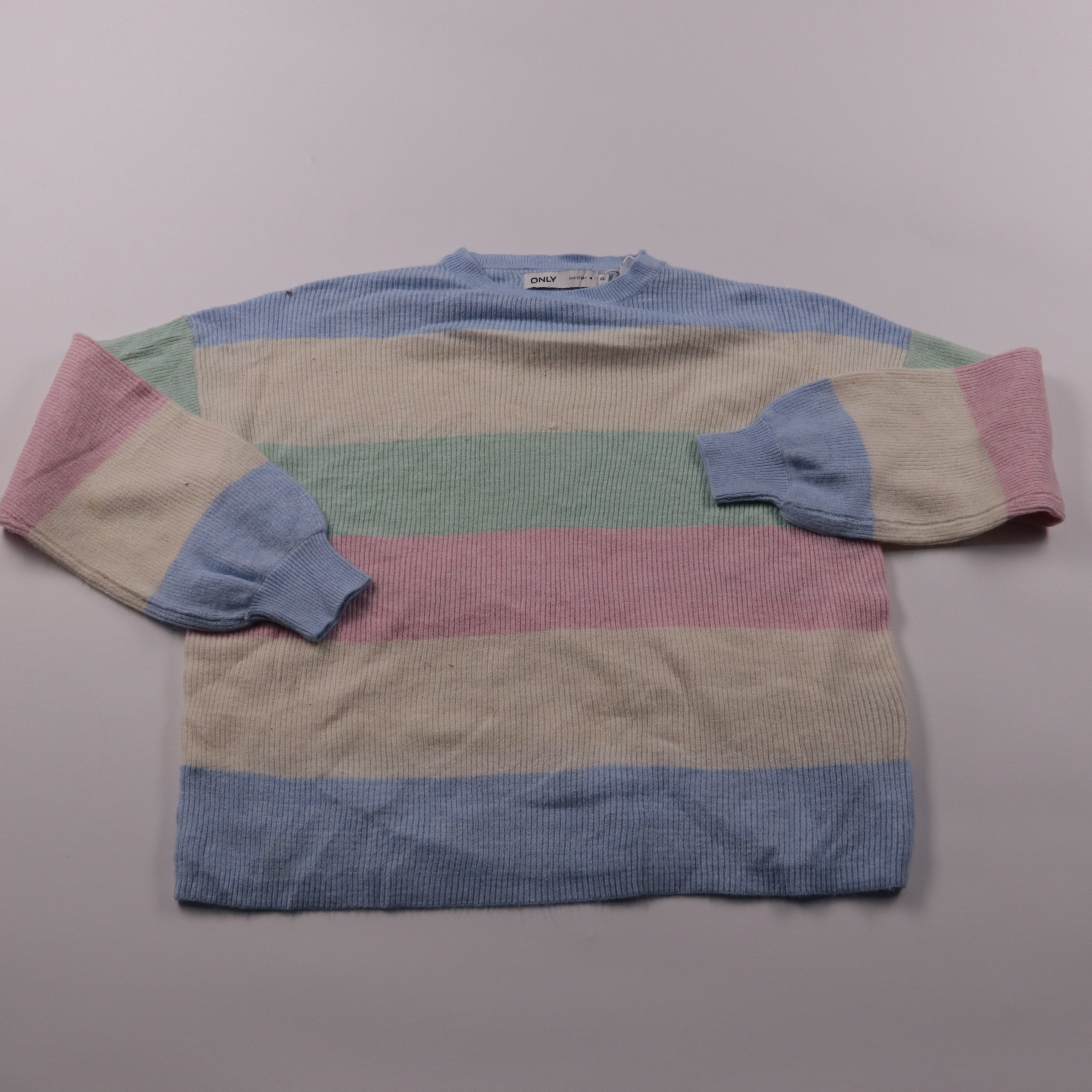 Джемпер Only в пастельную полоску (голубой, молочный, мятный, розовый), мягкая фактурная вязка и круглый вырез. Подойдёт для повседневных образов в прохладную погоду — с джинсами, брюками или юбкой. Лёгкий синтетический состав делает его практичным в у...