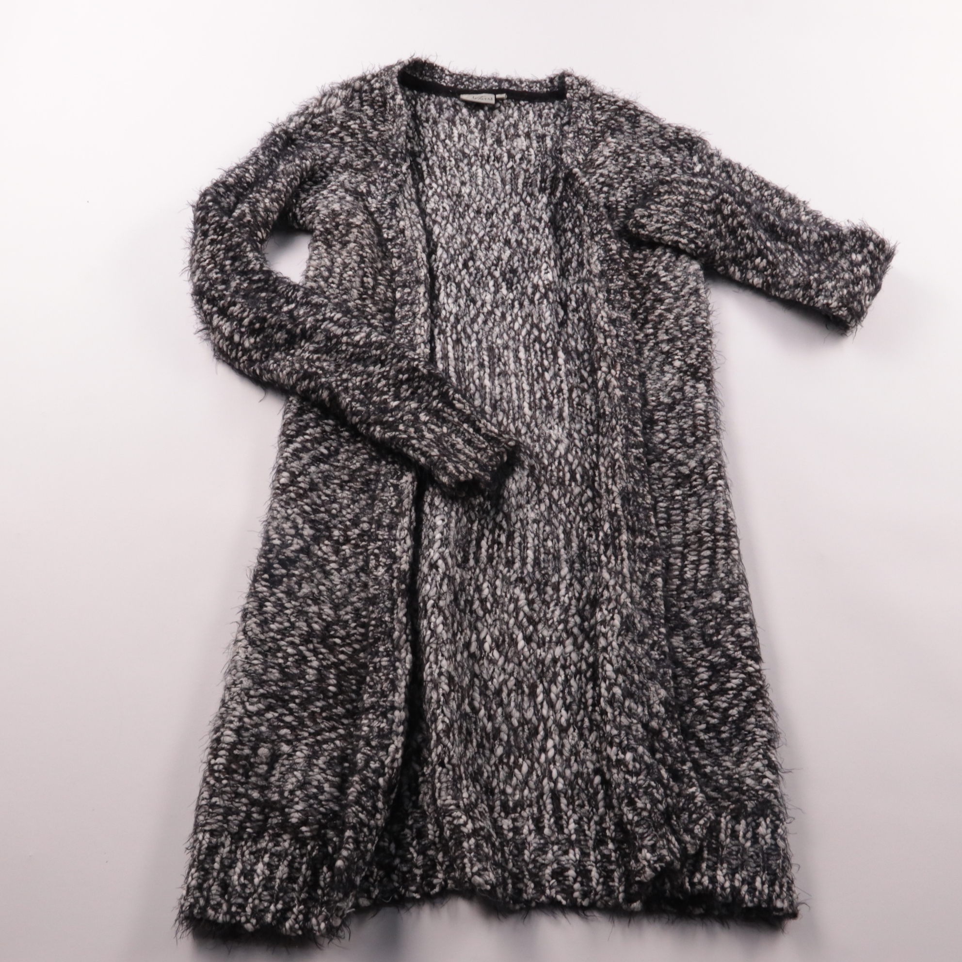 Удлинённый вязаный кардиган 9th Avenue крупной фактурной вязки в чёрно-белом меланже, без застёжки. Подойдёт для прохладной погоды и многослойных повседневных образов с джинсами или платьем. Тёплый и уютный, легко сочетается с базовыми вещами.