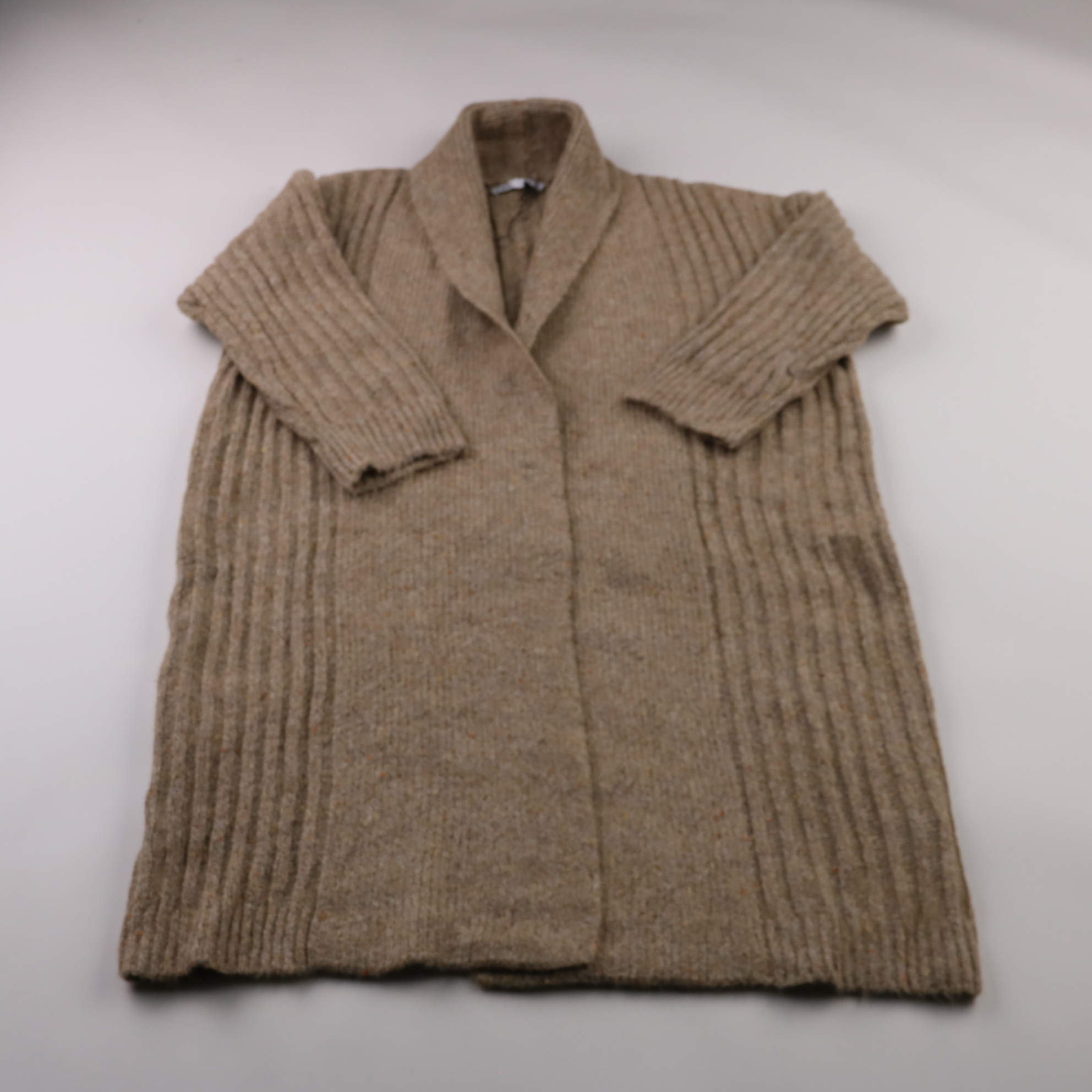 Вязаный кардиган Zara бежевого меланжевого цвета с фактурной вязкой и шалевым воротником. Подойдёт для повседневных образов и офиса в прохладную погоду, хорошо смотрится с джинсами или брюками. Тёплый и мягкий, не требует сложного ухода.