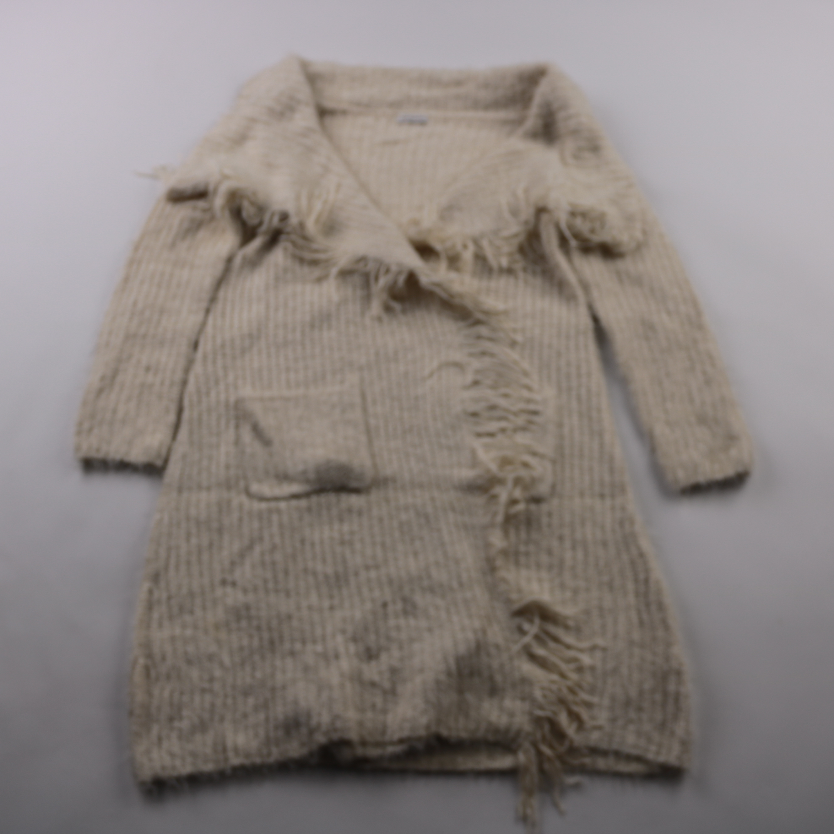 Вязаный кардиган Fde'la passion молочного цвета с объёмным воротником и отделкой «травка» по борту. Подойдёт для повседневных образов в прохладную погоду, хорошо смотрится с джинсами и платьями. Мягкая фактура и накладной карман делают модель удобной д...