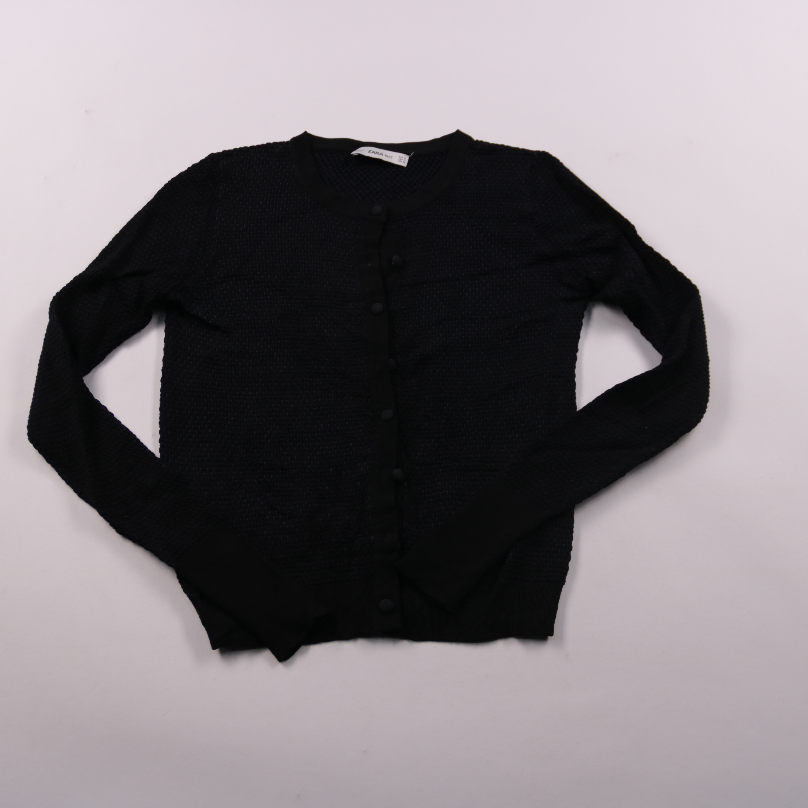 Кардиган Zara Knit чёрного цвета с круглым вырезом и застёжкой на пуговицы, фактурная вязка. Подойдёт для офиса и повседневных образов, легко сочетается с джинсами, брюками и юбками. Практичен тем, что можно носить как самостоятельный верх или как слой...