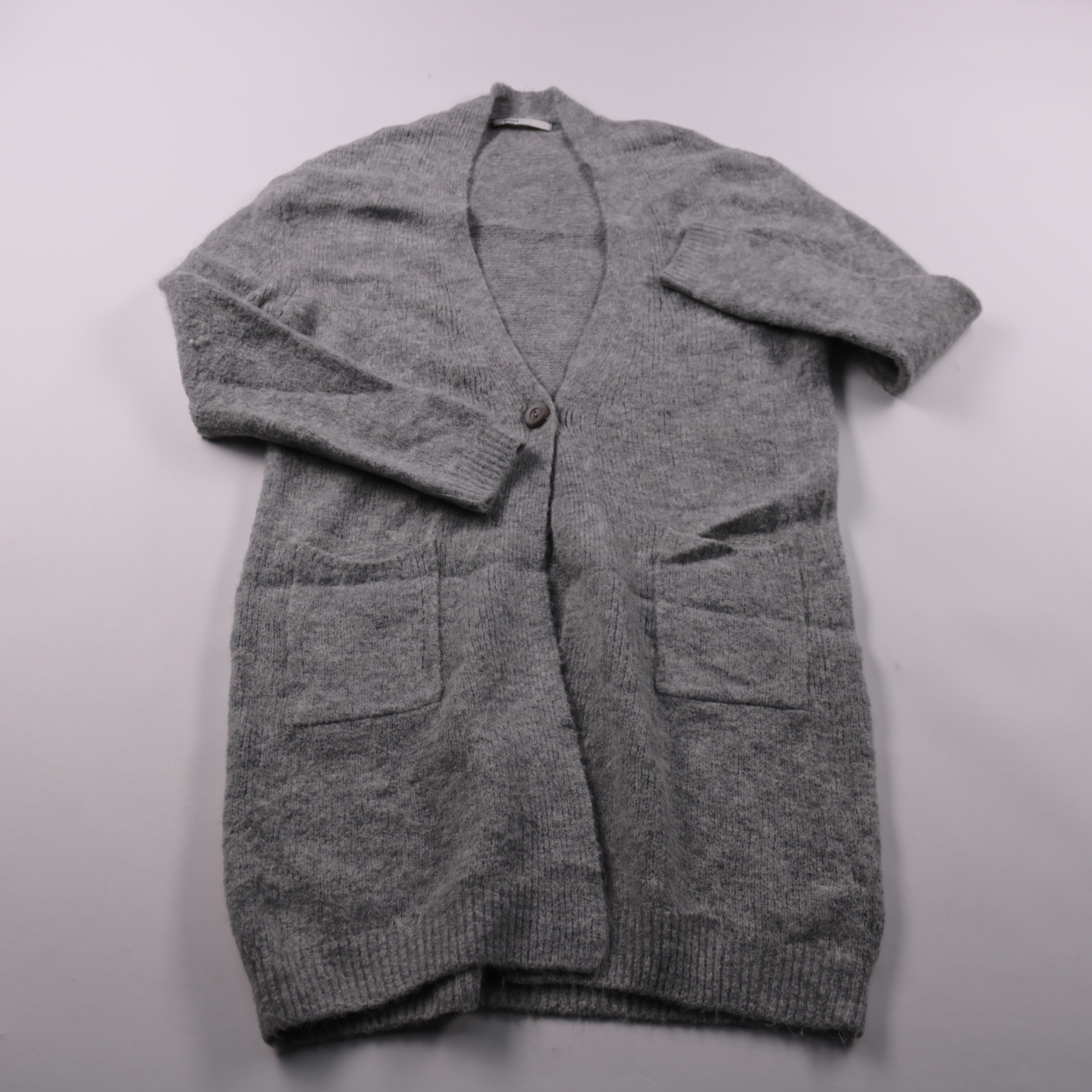 Вязаный кардиган Steps серого цвета, удлинённый, с V-вырезом, застёжкой на пуговицу и накладными карманами. Подойдёт для офиса и повседневных образов, удобно носить поверх футболки или блузы. Мягкий трикотаж хорошо сохраняет тепло и комфортно сидит в м...