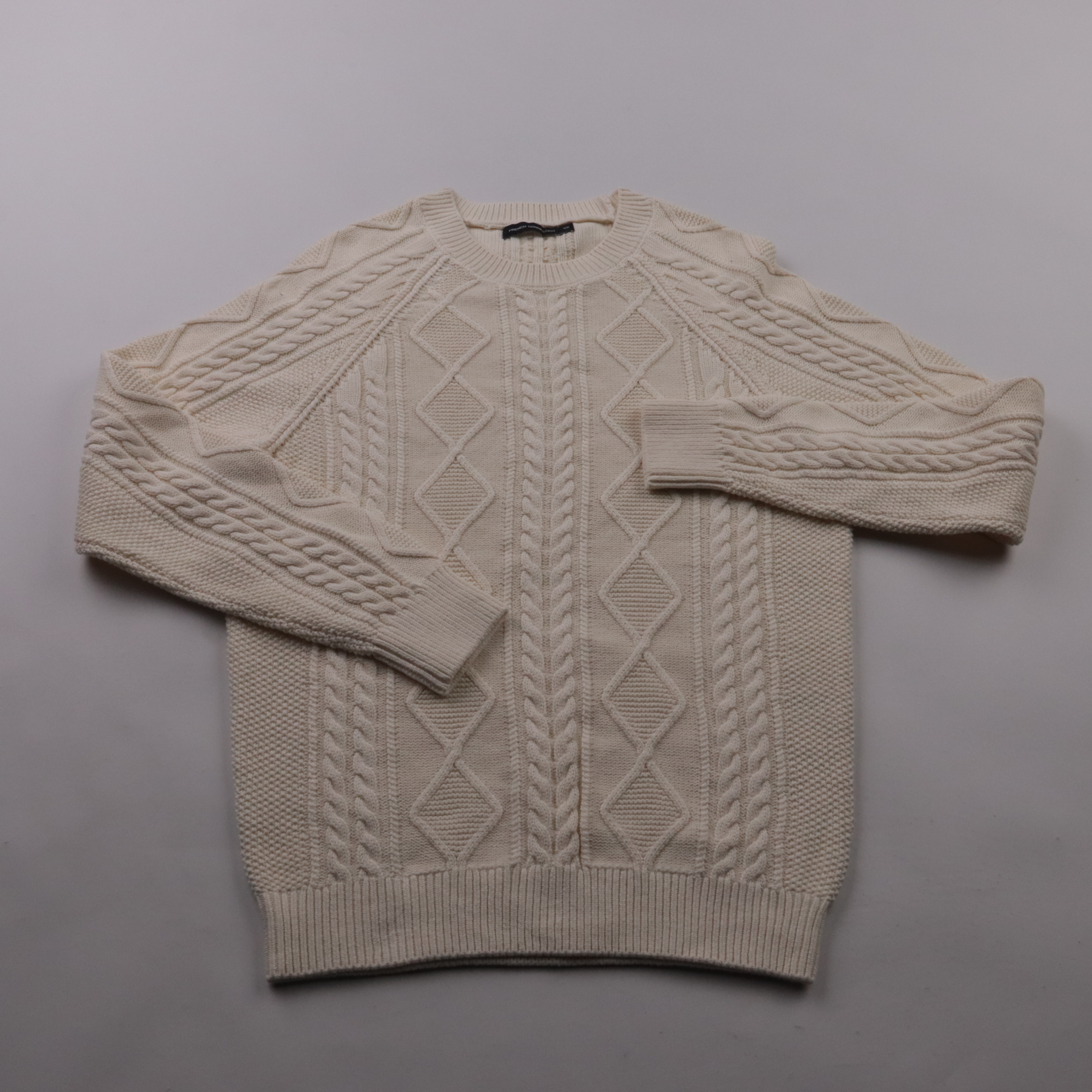 Свитер French Connection молочного цвета с фактурной вязкой «косы» и круглым вырезом. Подойдёт для повседневных образов в прохладную погоду, хорошо сочетается с джинсами и юбками. Плотная вязка помогает лучше сохранять тепло и держит форму.