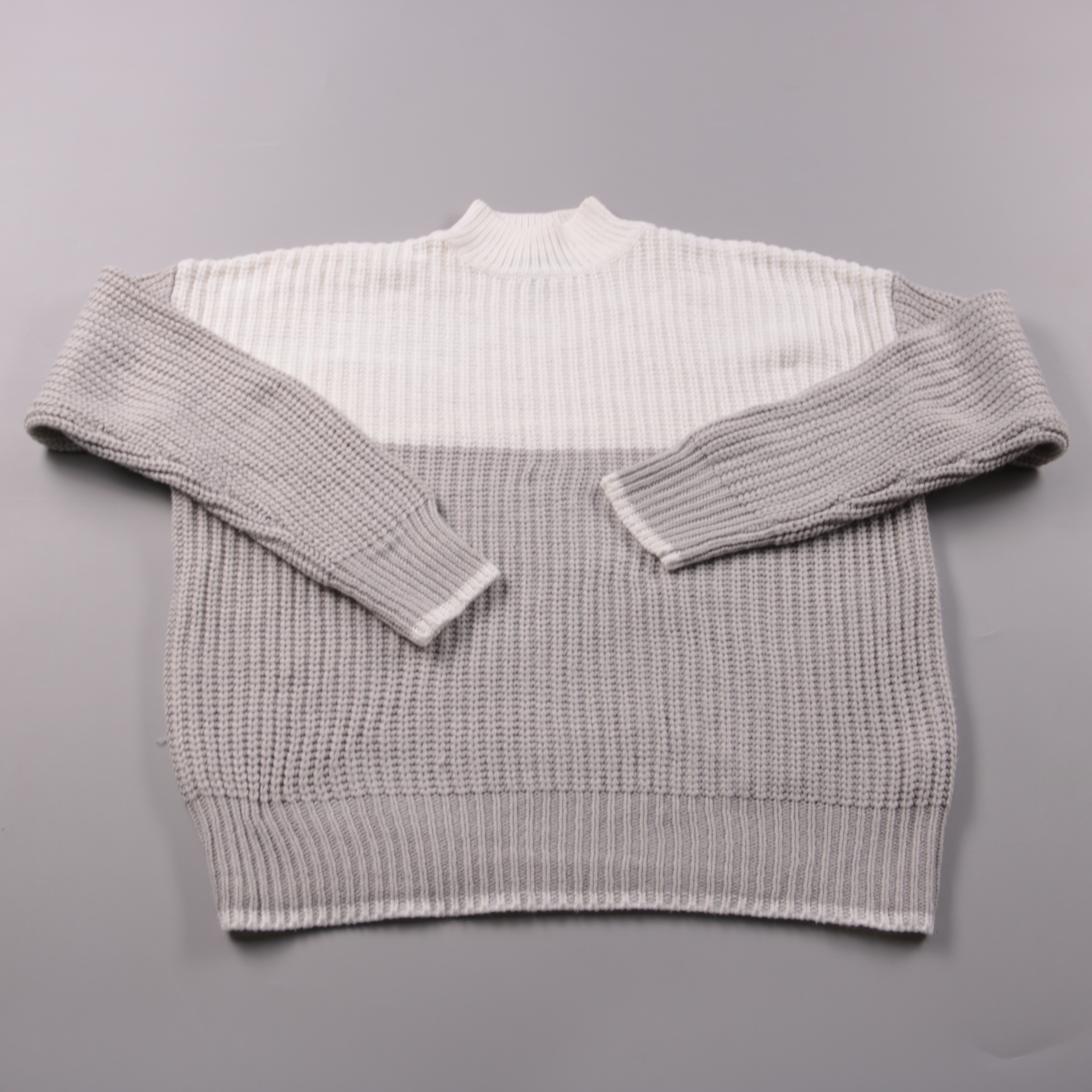 Вязаный свитер New Look в двухцветном дизайне: белый верх и серый низ, с высоким воротником-стойкой. Подойдёт для повседневных образов в прохладную погоду, хорошо сочетается с джинсами и юбками. Плотная вязка из акрила проста в уходе и быстро сохнет по...
