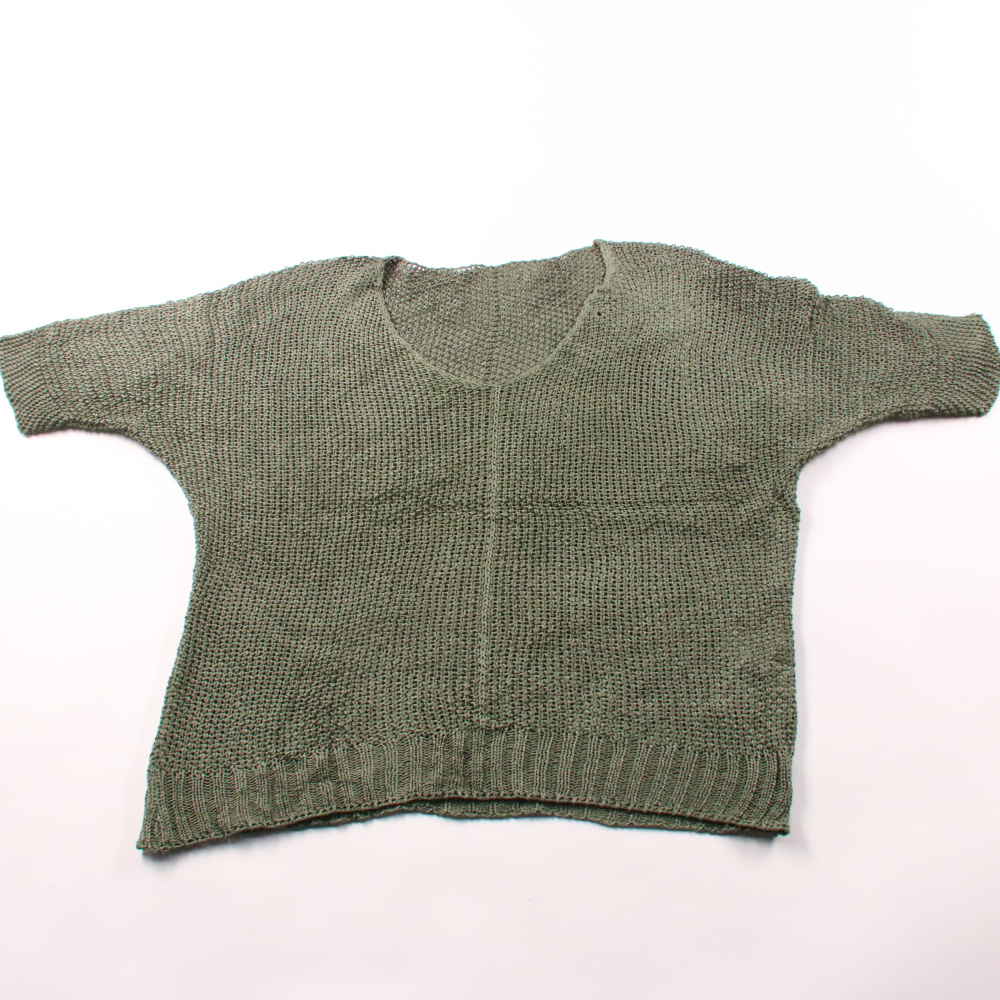 Вязаная кофта свободного кроя с коротким рукавом и круглым вырезом. Подойдёт для повседневных образов в демисезон и прохладным летом, хорошо смотрится с джинсами и юбками. Акриловый состав прост в уходе и быстро сохнет.