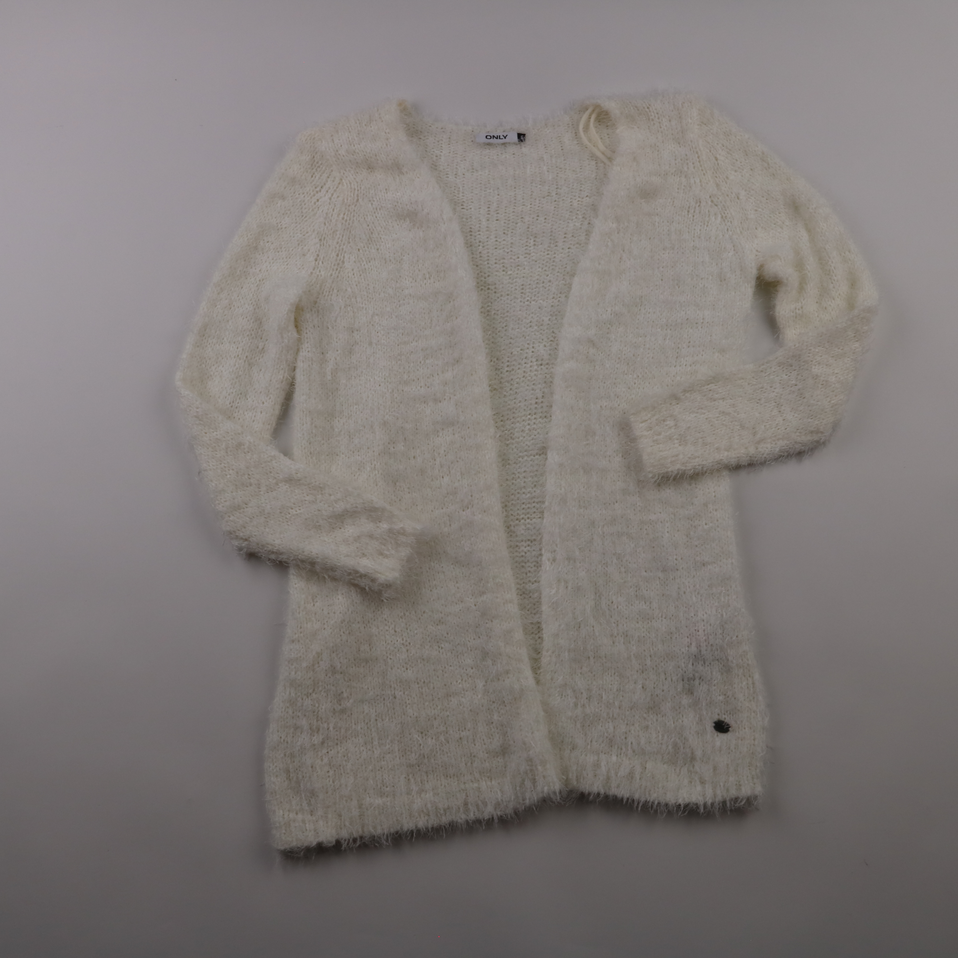Вязаный кардиган Only молочного цвета с мягкой «пушистой» фактурой и открытым передом без застёжки. Подойдёт для прохладной погоды и многослойных образов поверх топа или платья. Лёгкий, быстро накидывается и удобно носится как верхний слой.