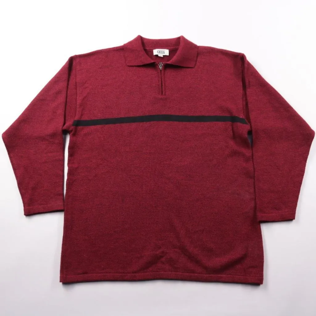 Вязаный джемпер Cecil бордового цвета с воротником-поло и короткой молнией, с контрастной полосой по груди. Подойдёт для прохладной погоды и повседневной носки, хорошо сочетается с джинсами или брюками. Молния позволяет быстро регулировать посадку у го...