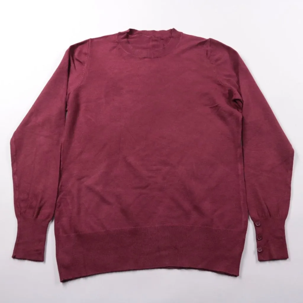 Трикотажный джемпер бордового цвета с круглым вырезом и пуговицами на манжетах. Подойдёт для повседневной носки в офис и на каждый день в демисезон, хорошо сочетается с джинсами и юбками. Есть небольшой зацеп/затяжка на ткани, при этом вещь лёгкая и уд...