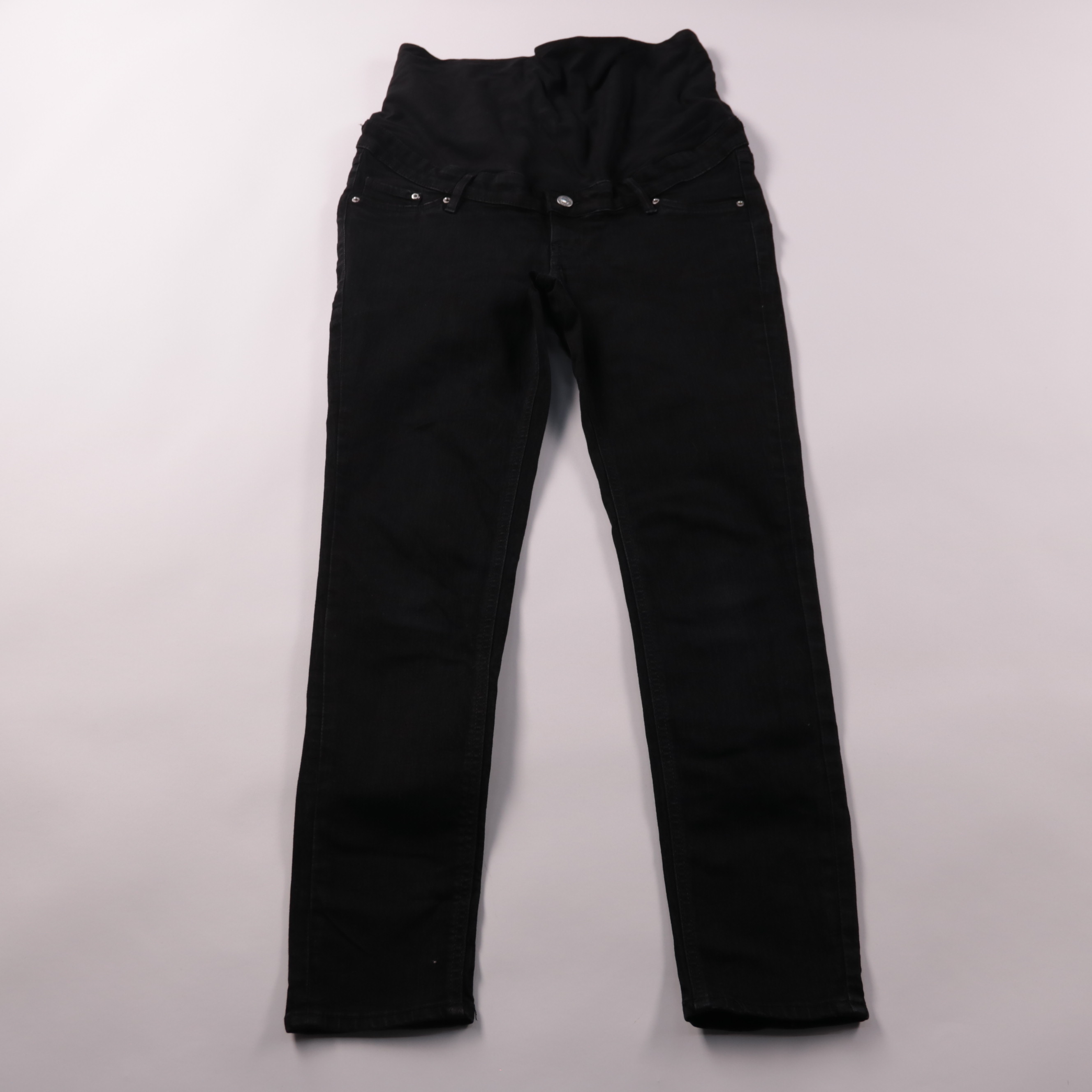 Женские джинсы H&M MAMA модели Skinny High Rib в чёрном цвете с высокой эластичной вставкой на талии. Подойдут для повседневных образов в период беременности и после, хорошо сочетаются с базовыми футболками и свитерами. Тянущийся материал и широкий поя...