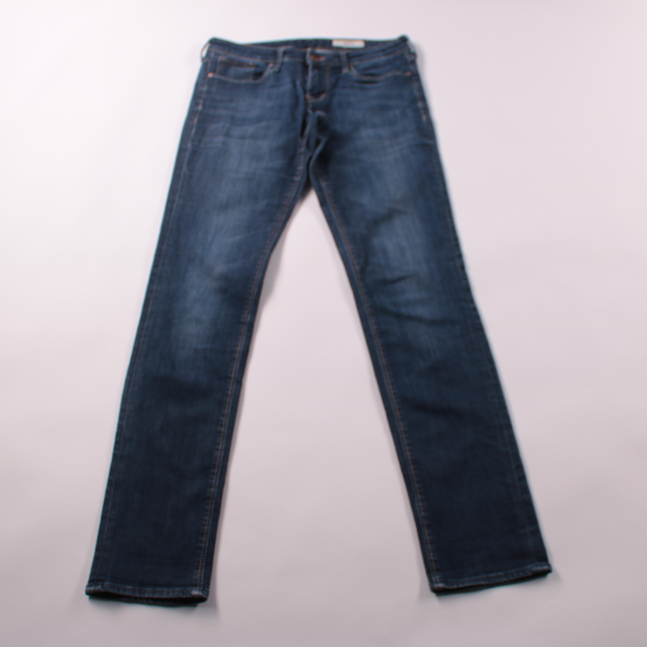 Женские джинсы &SQIN с низкой посадкой и зауженными штанинами (Low waist, Slim leg) в синем дениме. Подойдут для повседневных образов с кедами или ботинками и базовым верхом. Практичный плюс — плотный материал с небольшим добавлением эластана комфортне...