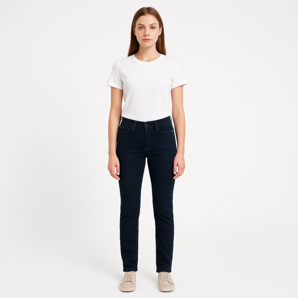 Женские джинсы Crew Clothing Co. из тёмно-синего денима со слегка зауженным прямым кроем и посадкой, подходящие на каждый день и в офис с базовыми вещами. Эластичность ткани (хлопок с добавлением эластана) даёт более комфортную посадку и удобство в дви...