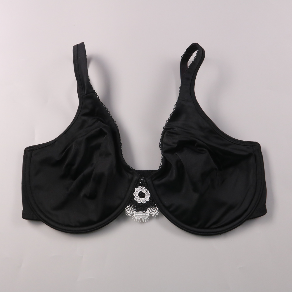 Черный бюстгальтер Ellen Tracy на косточках с кружевной вставкой по центру. Подойдет на каждый день и под облегающую одежду благодаря гладким чашкам. Хорошо держит форму и поддерживает грудь.