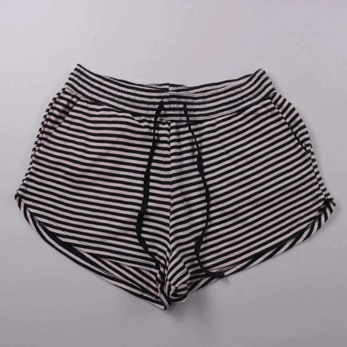 Женские домашние шорты H&M Basics в чёрно-белую полоску, с мягким эластичным поясом и шнурком. Подойдут для сна, отдыха дома и как удобные шорты для пижамного комплекта. Трикотаж с хлопком приятный к телу и хорошо дышит.