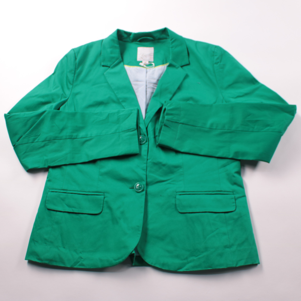 Женский пиджак S.Oliver ярко-зелёного цвета с классическим воротником и застёжкой на пуговицы. Подойдёт для офиса и повседневных образов, легко сочетается с джинсами и брюками. Практичен за счёт плотного хлопкового материала со стрейчем и удобных карма...