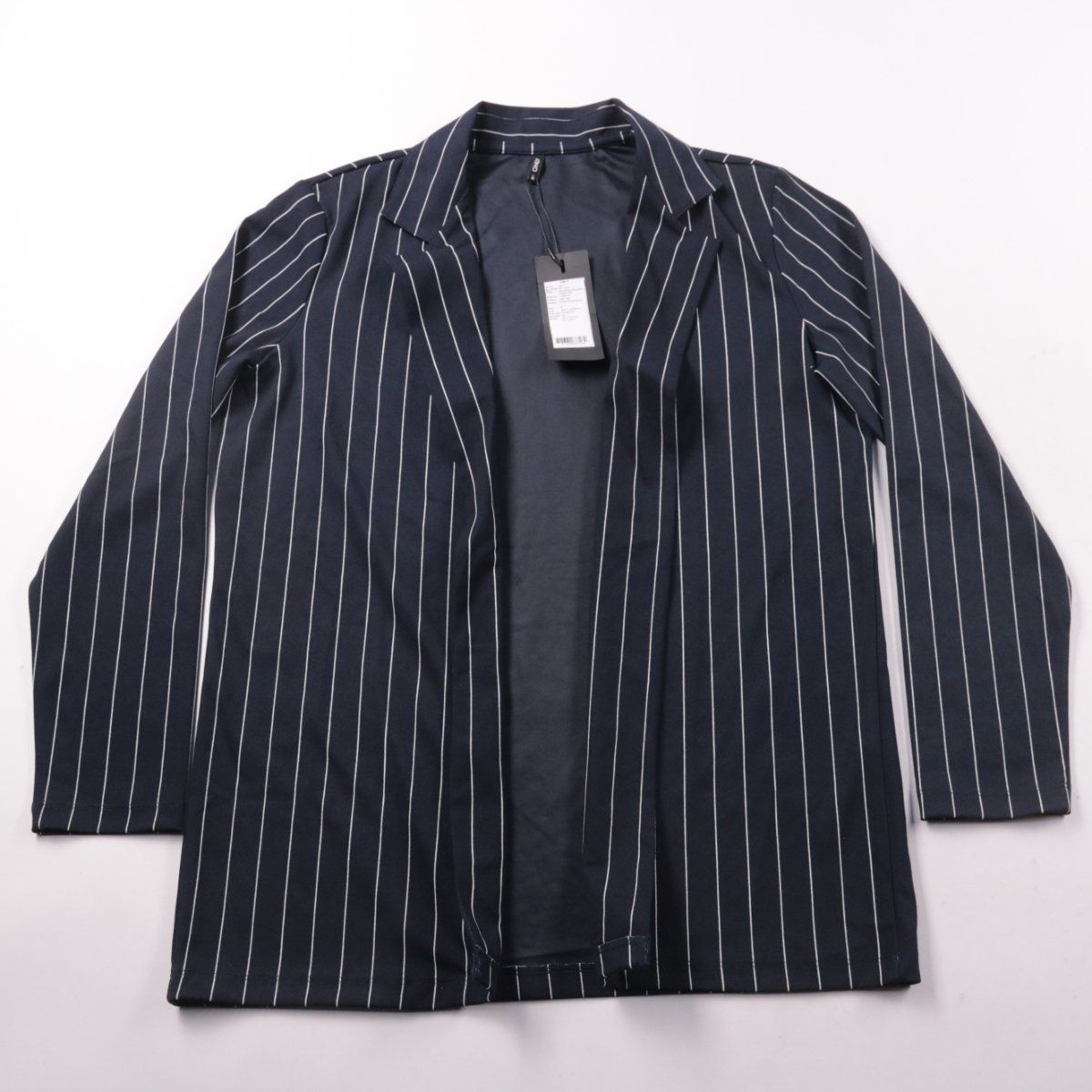 Женский пиджак-блейзер ONLY в тёмно-синем цвете Night Sky с белой вертикальной полоской. Подойдёт для офиса и повседневных образов с джинсами или брюками. Ткань с добавлением эластана немного тянется и комфортна в носке.