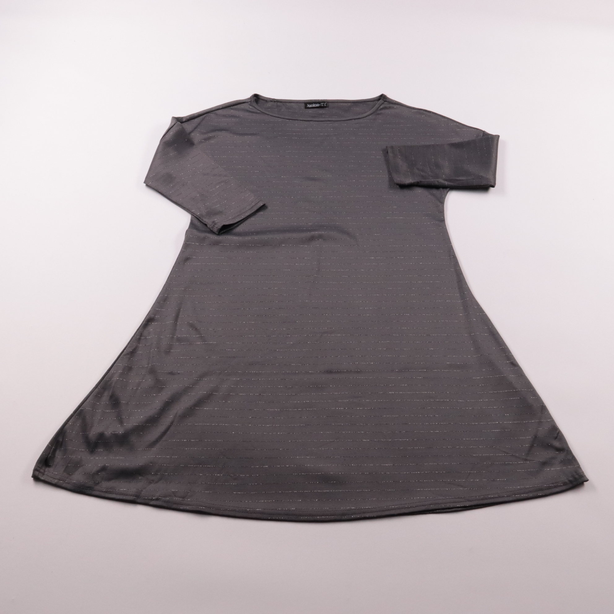 Повседневное платье Janina А-силуэта с рукавом 3/4 и круглым вырезом, в тёмно-сером цвете с тонкой блестящей полоской. Подойдёт для офиса и на каждый день, легко сочетается с жакетом и обувью на низком ходу. Трикотажный материал тянется и не сковывает ...