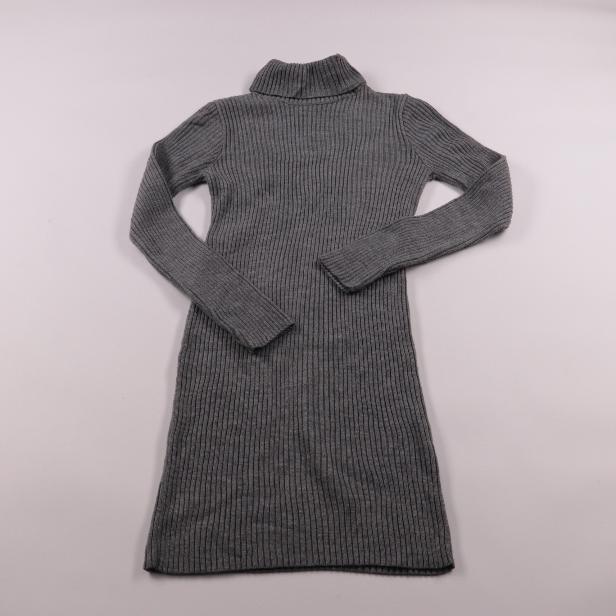 Вязаное платье-водолазка Bodyflirt серого цвета в рубчик с длинным рукавом. Подойдёт для повседневных образов в прохладную погоду, хорошо смотрится с ботинками или кедами. Трикотаж тянется и комфортно садится по фигуре.