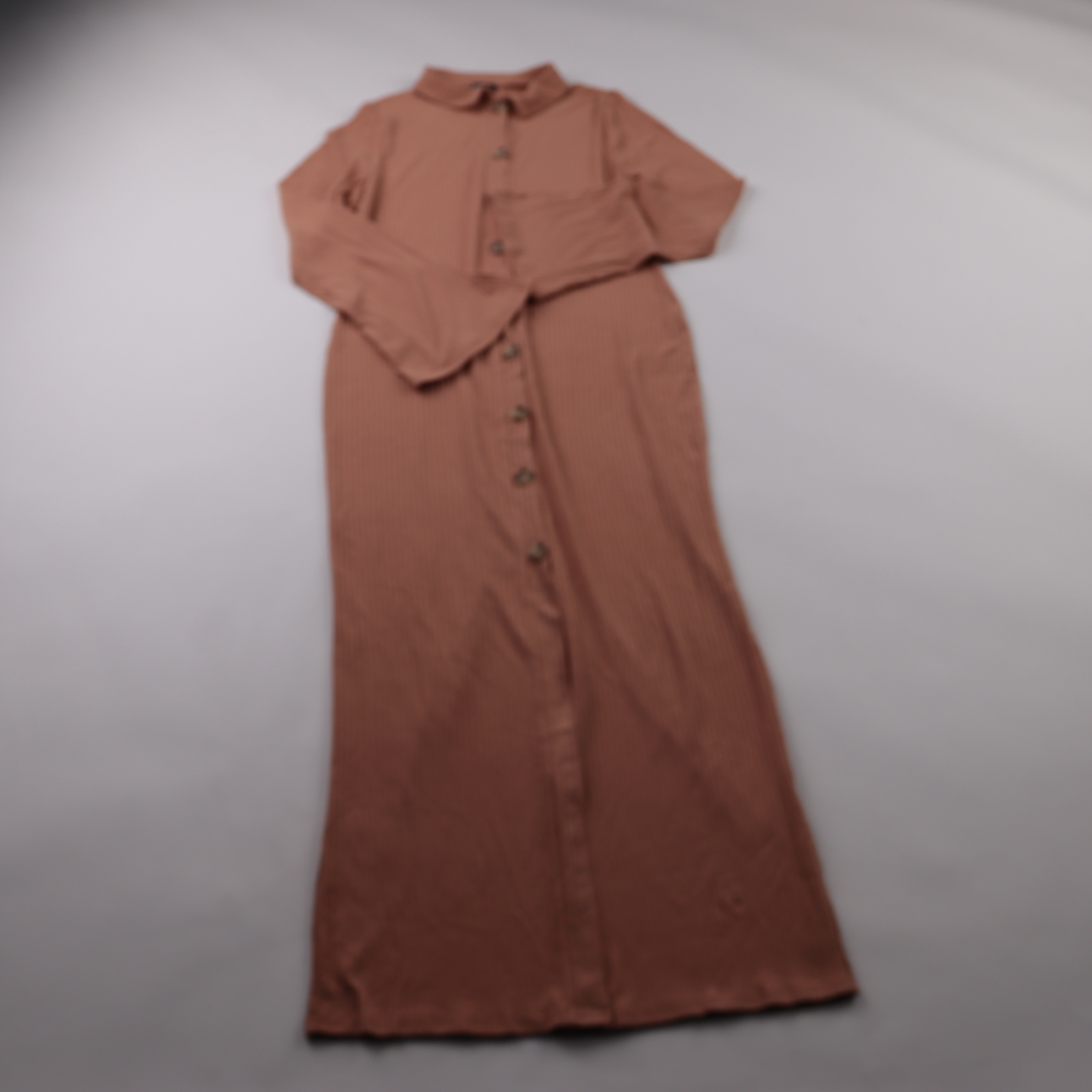 Повседневное платье-рубашка Boohoo терракотового оттенка с планкой на пуговицах и отложным воротником. Подойдёт для города и отпуска, легко комбинируется с кедами или босоножками. Ткань слегка тянется, поэтому удобно сидит и не сковывает движения.