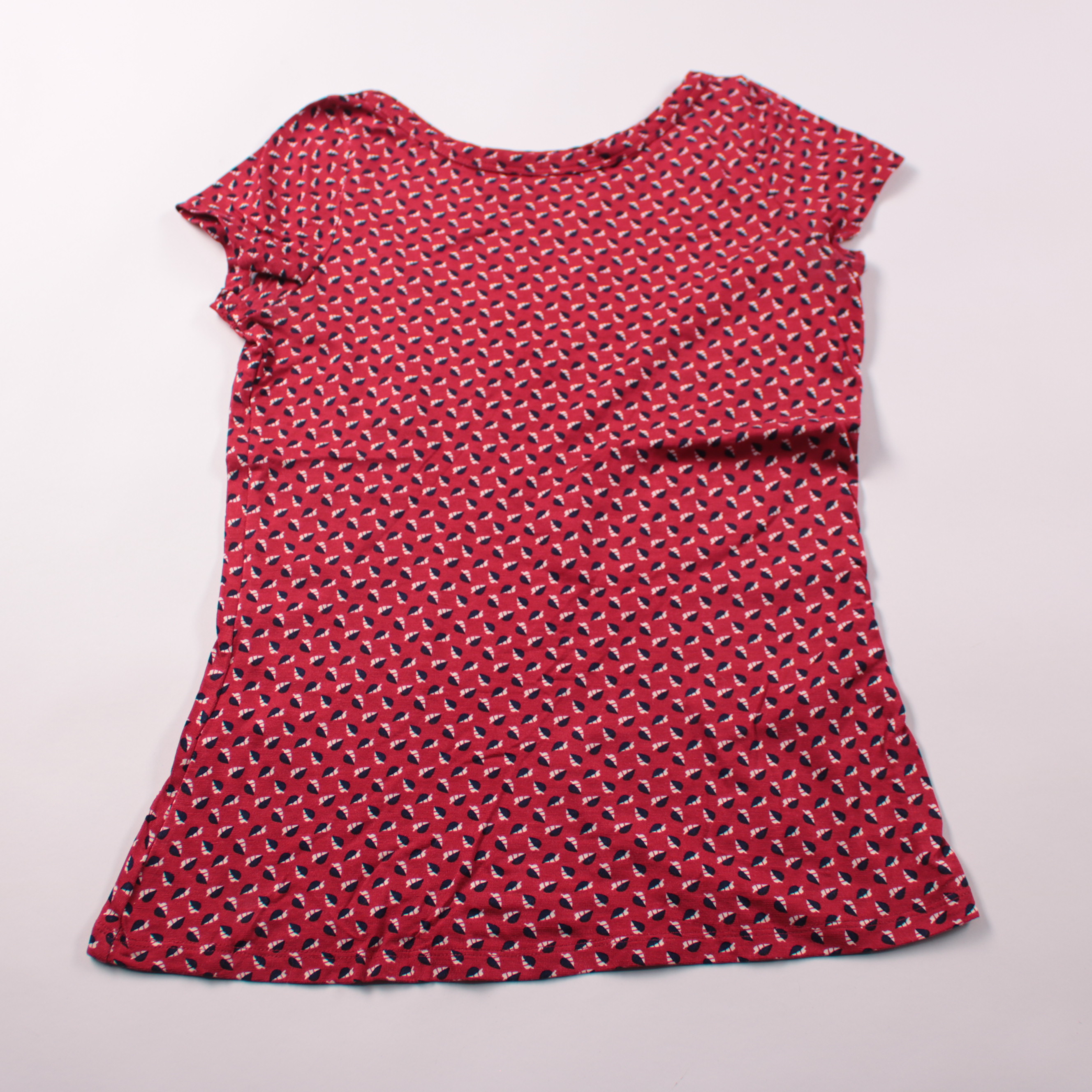 Повседневное платье King Louie из мягкой вискозы с эластаном, красного цвета с мелким принтом и коротким рукавом. Подойдёт для прогулок и офиса в тёплую погоду, легко сочетается с кедами или балетками. Ткань тянется и комфортно садится по фигуре.