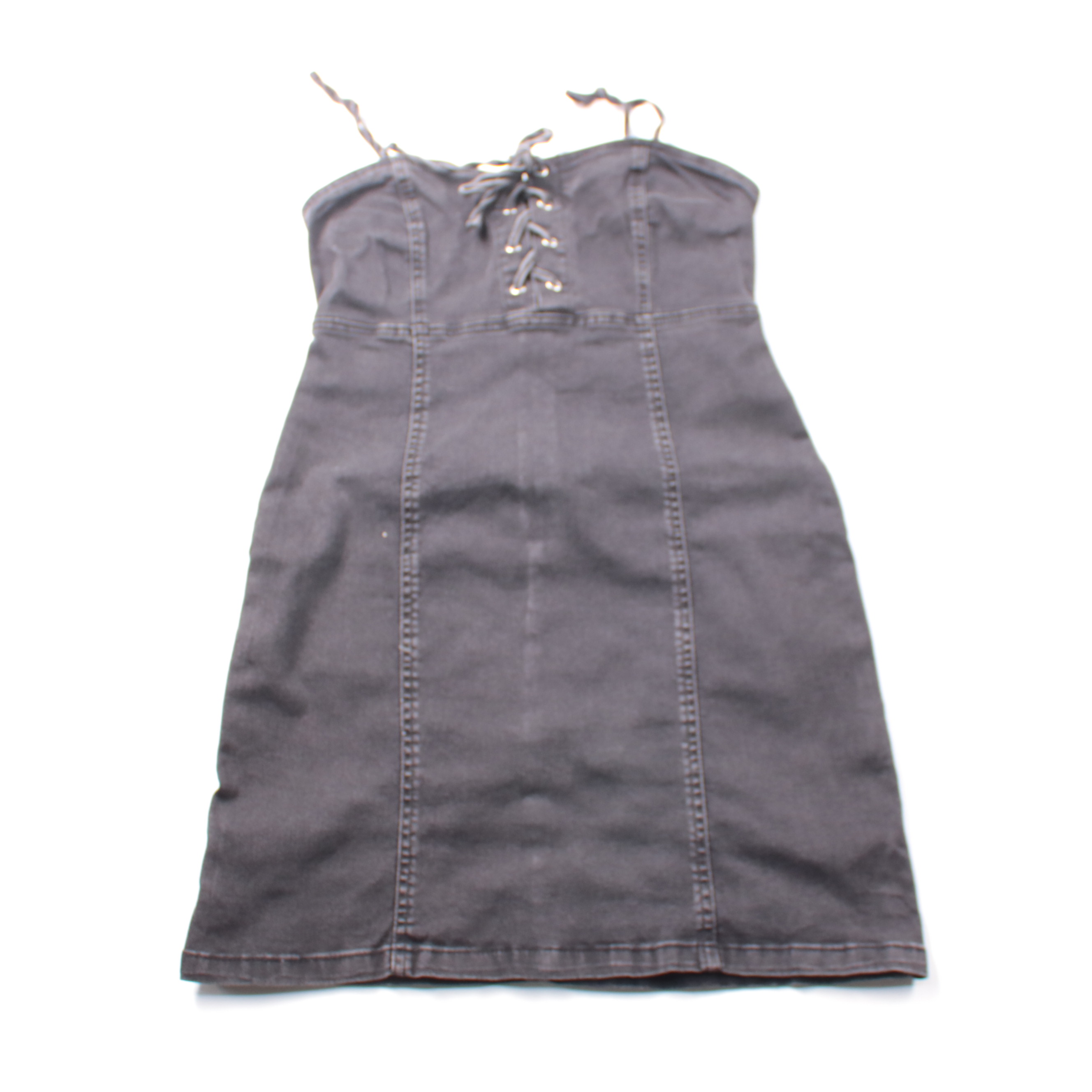 Джинсовое платье Denim Co из плотного хлопка с добавлением эластана, без бретелей и со шнуровкой спереди. Подойдёт для лета и отпуска, хорошо смотрится с кедами или босоножками. Ткань немного тянется, поэтому платье комфортно садится по фигуре.