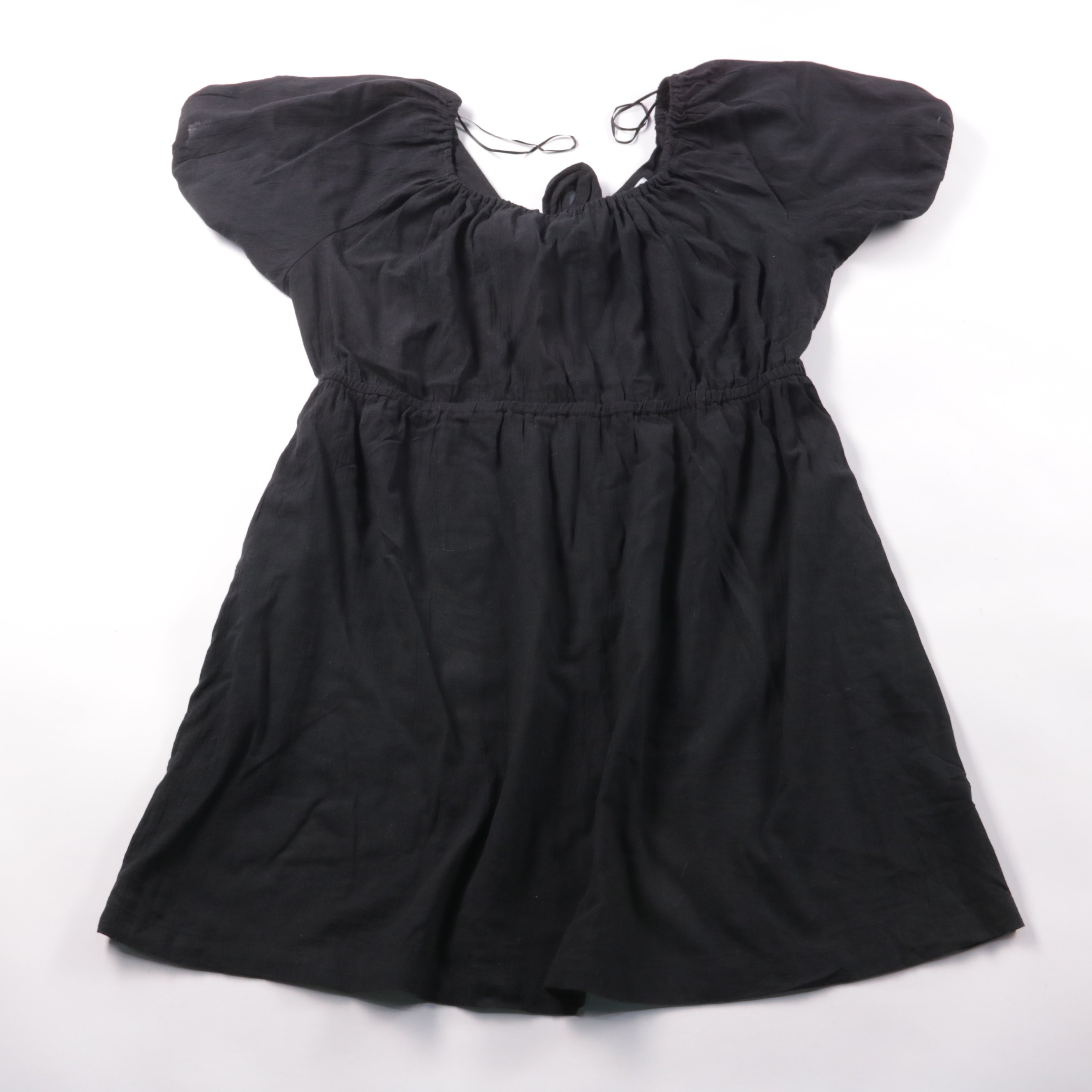 Повседневное платье Old Navy из хлопка, чёрного цвета, с короткими рукавами-фонариками и сборкой на талии. Подойдёт для прогулок и на каждый день, легко сочетается с кедами или сандалиями. Натуральный материал хорошо дышит и комфортен в тёплую погоду.